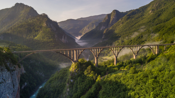 This route centres on Europe’s deepest canyon (1,300 m deep and 80 km long), and has been described by many local motorcyclists as “travelling back into prehistory”. It’s easy to see why if you take a look at the bed of the Tara river, carved out over millions of years. If you choose to try out this route, you’ll find yourself immersed in a landscape of forests, dozens of waterfalls, and peaks of over 2,000 metres. At a certain point, you have the option of parking up your motorcycle and experiencing the adrenaline-pumping 350 m zipline over the canyon (secured by a harness).