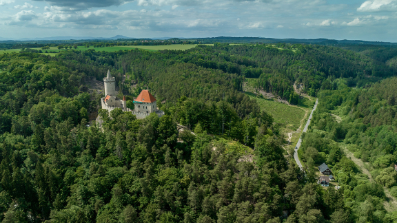 Our recommended route starts north of Prague, close to Mělník to be precise. It crosses the valley of Kokořínský důl as far as the medieval Kokořín Castle (from the top, you can enjoy a view of the entire region). The road through Kokořín Forest also leads to the mysterious Houska Castle, worth a visit due to the legends that claim it conceals the gateway to hell. The castle is situated 47 km from Prague and around 15 km from Bezděz. The latter is home to another of this road tour’s stunning landmarks, in the form of a Gothic castle of remarkable beauty. Next, the route continues into the Liberec Region, around 20 km south-east of the town of Ceska Lipa.