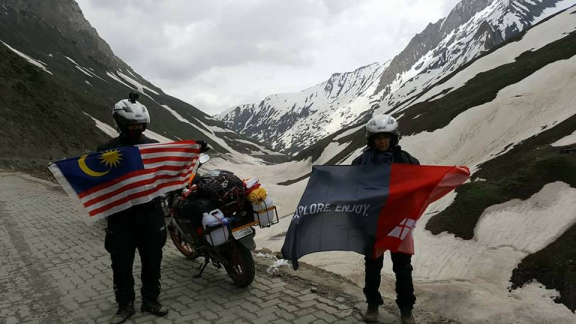 As a ‘practice’, Alfi had made shorter distance rides mainly to Indochina and up to mainland China. With co-operation from Anti-Drug Agency of Selangor, Alfi brought with him a message to inspire youth of the state to be more active in healthy lifestyle and to stay away from drugs. RTW touring is chosen as a platform to spread this message. He would hope to complete the 25 countries journey in 120 days through the routes he’s chosen : Thailand, Myanmar, India, Pakistan, Iran, Turkey, Greece, Albania, Macedonia, Bulgaria, Romania, Slovakia, Czech Republic, Slovenia, Hungary, Croatia, Austria, Italy, Switzerland, Germany, Netherlands, Belgium, France and lastly United Kingdom. Currently in Pakistan, the couple has had challenging moments especially to pass through highest motorable road on earth, Khardung La Pass India. Being on a moped with pillion really tested the strength and spirit of Alfi. However, he is determined to accept all the coming challenges to complete this once in a lifetime journey.
