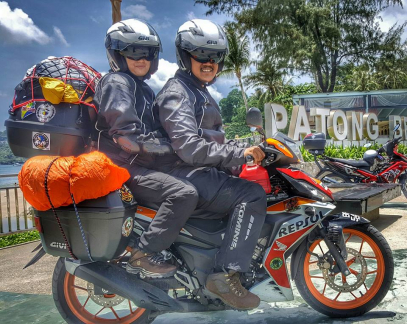 Many Malaysians have proven that ‘round the world’(RTW) adventure by motorcycles are now very much possible. Countless of long distance rides have been recorded by Malaysians since. Latest being a couple ride from Selangor state to London, England. Mohd Alfishahrin (31) and his new bride, Diana Latief(30) have decided to complete their ‘honeymoon’ all the way to London, by riding a moped, Honda RS150R (4 stroke,150cc). They have just got married two weeks prior to the flag off on 8th April 2017.