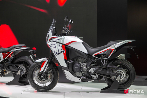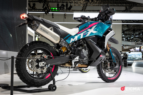 The brand that manufactures the engines for the KTM 790 introduced the public at EICMA to a prototype centred on off-road adventures. Proof of this aim is clear to see, in the two low side tanks, the long travel suspensions, and the vertical instrument panel (incorporating an 8” touchscreen) similar to those on rally motorcycles. The 21” and 18” wheels are further confirmation of the bike’s attitude. The MTX is powered by a 449 cc parallel twin inherited from the 450SR. The front end, with its stunning full LED headlight, is particularly striking.