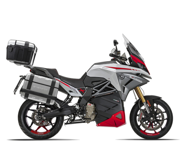 An outsider that’s earned its place in this review: it’s the zero-emissions “Made in Italy” Green Tourer. Is it possible to make travel fully electric? Energica certainly believe so. The motorcycle weighs 260 kg and has a frame optimised for sport touring, an adjustable windscreen and a generous carrying capacity. The luggage storage capacity (considering the trio of cases proposed) is 112 litres. The seat is 847 mm from the ground.