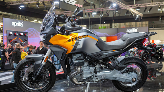 Chassis: the frame has also been renewed, with a trellis of steel tubes connected to a single-sided swingarm in aluminium. The cardan has been strengthened. The sophisticated braking system is the same as the Mandello; the ABS can be disabled (only in off-road mode). The tubeless spoked wheels measure 19” and 17”, while the suspensions are powerful and completely adjustable.