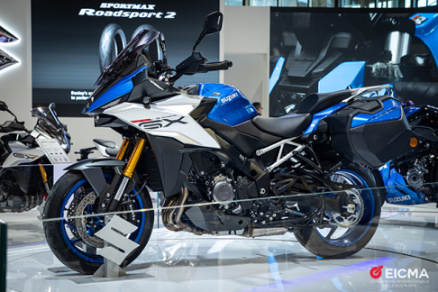 New from the brand for 2024, this GSX-R made its trade fair début with the GX code. It’s obvious at a glance that it belongs to the segment of maxi-crossovers designed for high-speed road touring, along with the 1000 ranges from BMW, Kawasaki, Honda, and Yamaha. Confirming this is the K5 engine: the 999 cc, in-line 4-cylinder also found on the 1000 GT, which can turn out 152 horsepower and 106 Nm of torque.