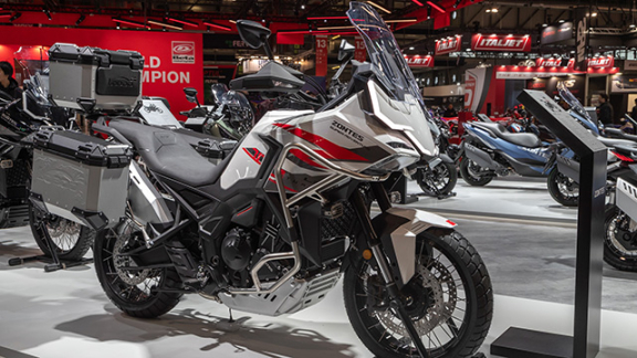 Morbidelli - which is now linked to the Keeway Group - made its début at EICMA in the adventure-tourer segment, with a maxi motorcycle, with 997 cc V two-cylinder engine, providing 87 HP and 89 Nm. Its wealth of accessories allows to choose between 4 riding modes. The chassis features a steel perimeter double-cradle frame, 19” front wheel, Kayaba suspensions (43 mm rod fork and 183 travel), and J.Juan brakes. On/off ABS. Standard equipment also includes: adjustable windscreen, backlit control units, 7” TFT dashboard, heated knobs and seat. The seat is 820 mm from the ground. The kerb weight is 265 kg and the tank capacity is 20 litres.
