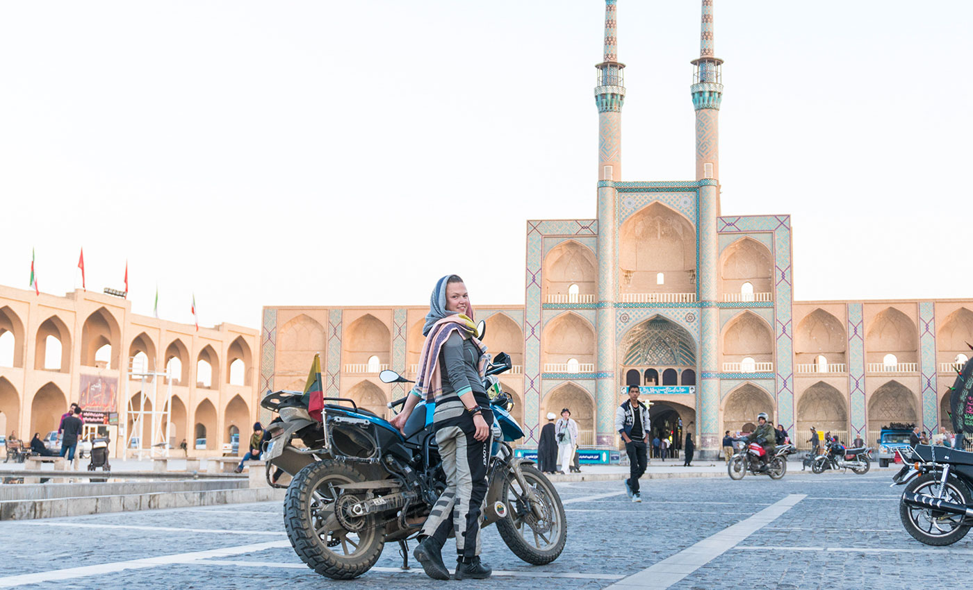 From Uzbekistan, we returned to a remote part of Kazakhstan, to catch a ferry over the Caspian Sea from Aktau to Baku in Azerbaijan. And even though the ferry was rocking on the big waves so strong that the glasses slipped off the table in the canteen and all got crashed on the floor while most of the passengers were holding on to the walls trying hard to keep the contents of with their stomachs inside as their faces were turning almost green, we reached the coast of Azerbaijan as scheduled and after a bit complicated and lengthy procedure of importing our motorcycles into the country, were riding the brightly lit streets of the fancy capital city Baku at nighttime.In Baku we had to obtain our visas for Iran which luckily was an easy task and a few days later we were already on the way south towards the border with The Islamic State of Iran. The latter greeted us exceptionally warmly – with the locals being very friendly right from the moment we arrived at the border and then on throughout the whole month that we were riding there. We were invited to stay with locals who approached us right on the streets, got to taste many different traditional local meals, were taken to fascinating historical places and were truly humbled by the generosity and warm-heartedness of simple Iranian people. And even though the traffic in Iran was our biggest challenge with locals driving more by the common unwritten rules of people walking in the crowd rather than the normal traffic rules which are accepted and (more or less) respected all around the world, this country for us was an unforgettable experience and we are happy to have made new friends there with whom we stayed in touch since then.