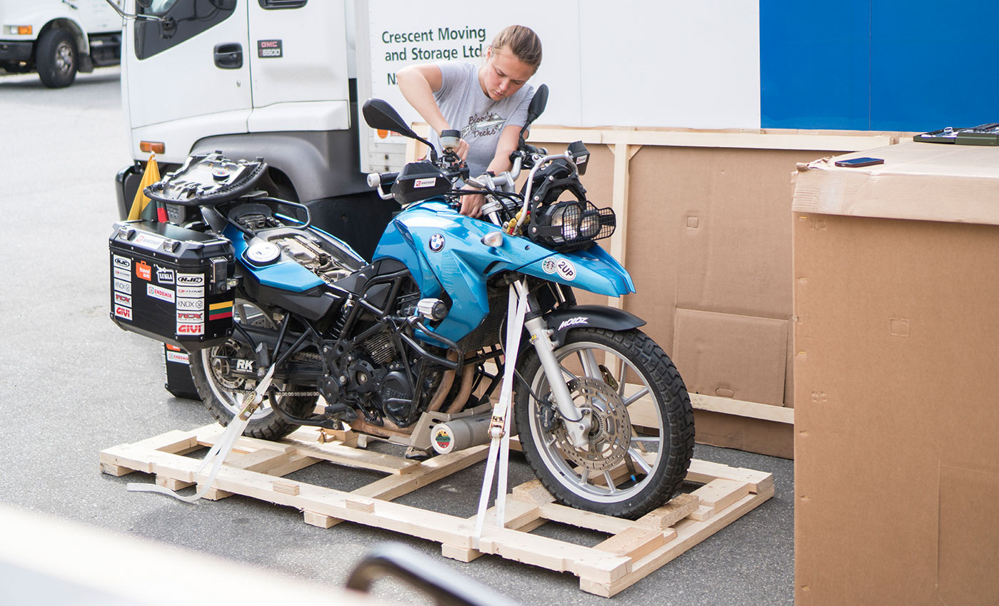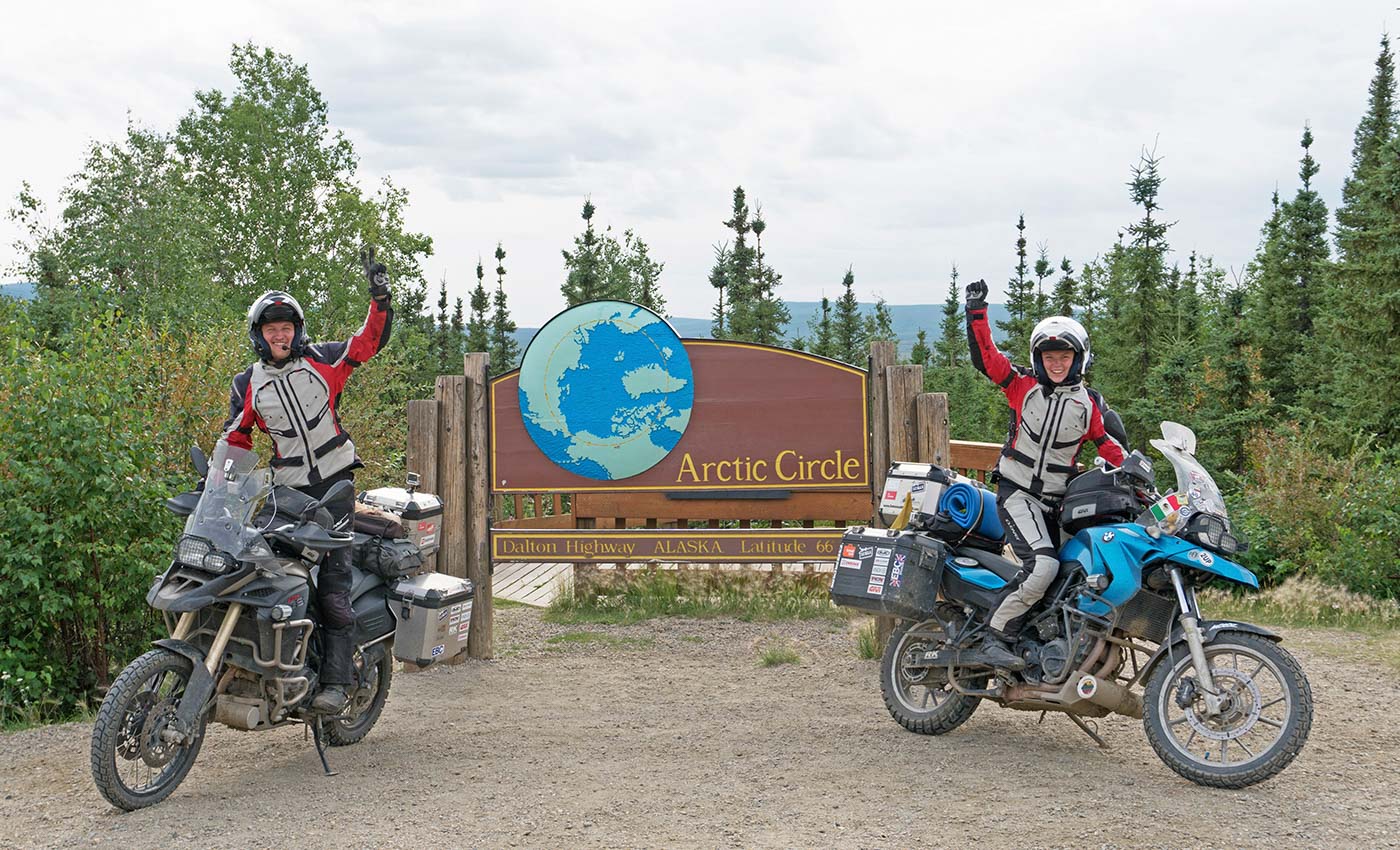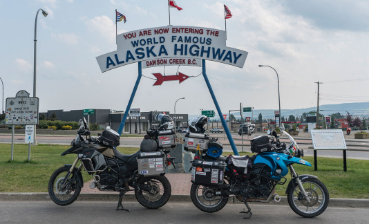Finally, we reached The Top Of The World Highway – a scenic gravel road winding on the mountain ridges and while on it, we crossed the border back into the US. In through the northernmost land border crossing post of the US, called Poker Creek, and here we were – finally in Alaska – a mysterious state that we have known and dreamt of visiting since childhood!After making a loop and a few hundred kilometers detour on the gravel through the Dalton Highway to reach the Arctic Circle and see the midnight sun, we turned back. We have travelled all the way from Ushuaia, which is the southernmost city in Argentina, to the Arctic Circle in Alaska and now it was the time to find the way to get us together with our trusty two-wheeled partners to the next continent – Asia. The most convenient location to ship the motorcycles from was Vancouver, so we spent a couple more weeks riding the scenic routes in British Columbia before we got there and stayed for some time until our visas for Russia and motorcycle shipment arrangements were done.