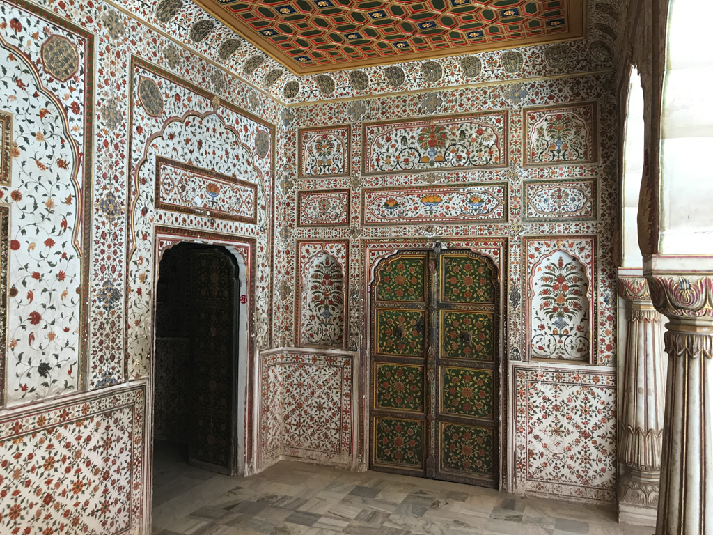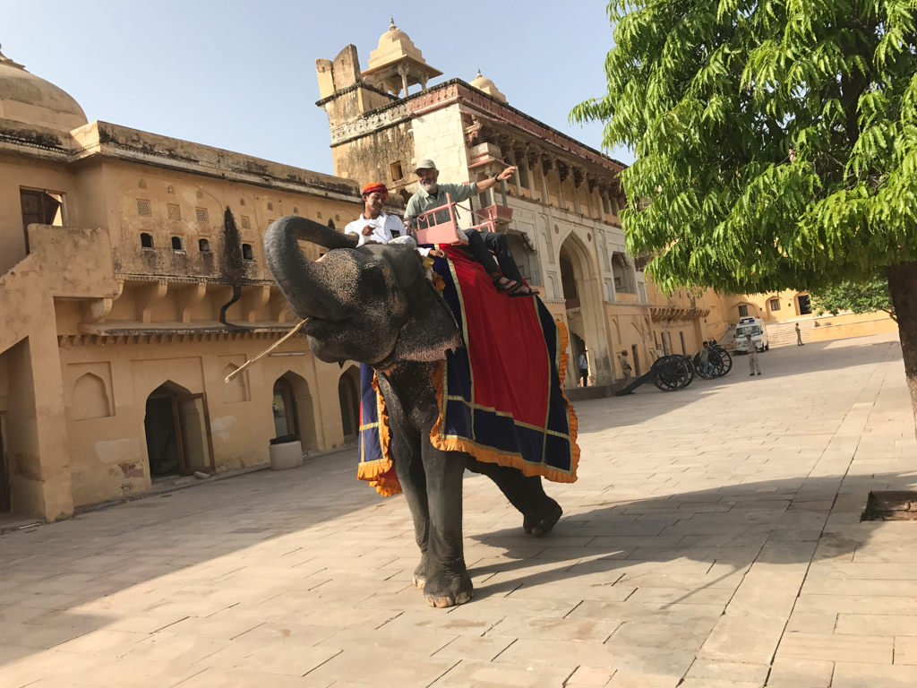 The capital of Rajasthan did not disappoint us. With its 3 million inhabitants, it seemed a little more orderly than other cities we had visited. Many motorcyclists carry a helmet, there are less crazy drivers in the streets and less littering. Our “trusted” driver is scheduled at 7:30am, this time with a car equipped with air conditioning. It is taking us to the Amber Fort, the UNESCO World Heritage site located 11km outside Jaipur. Surrounded by tall walls, the Amber Fort was the residence of the Maharaja Raiput and his family. On the way back, we stop at the City Palace, home of the Maharaja of Jaipur, a huge and complex palace with many courtyards, two museums and an armoury.