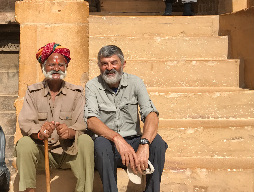 Today we will pass the 10,000km mark, covered in just over a month, including stops. In our eyes, we still have images of unique Bikaner a sacred place in the world, where rats are respected. Thousands of rats worshipped and fed by followers as if they were Gods. Legend has it that one day, wise Indian Karni Mata, asked Yama the God of Death to bring back to life her son Laxman, who had drowned in a lake. Yama, who had previously been unmovable, gave up on the woman’s pleas by allowing the boy to turn into a rat and this concession was extended to all the male children of Karni Mata. We spend the afternoon reaching Jaisalmer, immersed in an ever more deserted landscape, with very few crops and many acacia trees among which numerous cows, which are sacred in India, are increasingly thinner and they dice with danger with their sudden road crossing. After travelling 335Km, we reach Jaisalmer. Here we stop for one day … aware that this magical place deserves a longer stay as there is lots to see. For many centuries, the “fortress town” served as a shelter and a stopover for caravans and travellers along the Silk Road, one of the main trading routes between East and West; over the centuries, its ramparts have been the backdrop to many battles. Surrounded by mighty walls, Jaisalmer is still home to 4,000 people. Tomorrow’s stage is Jodhpur, another interesting city in Rajastha.