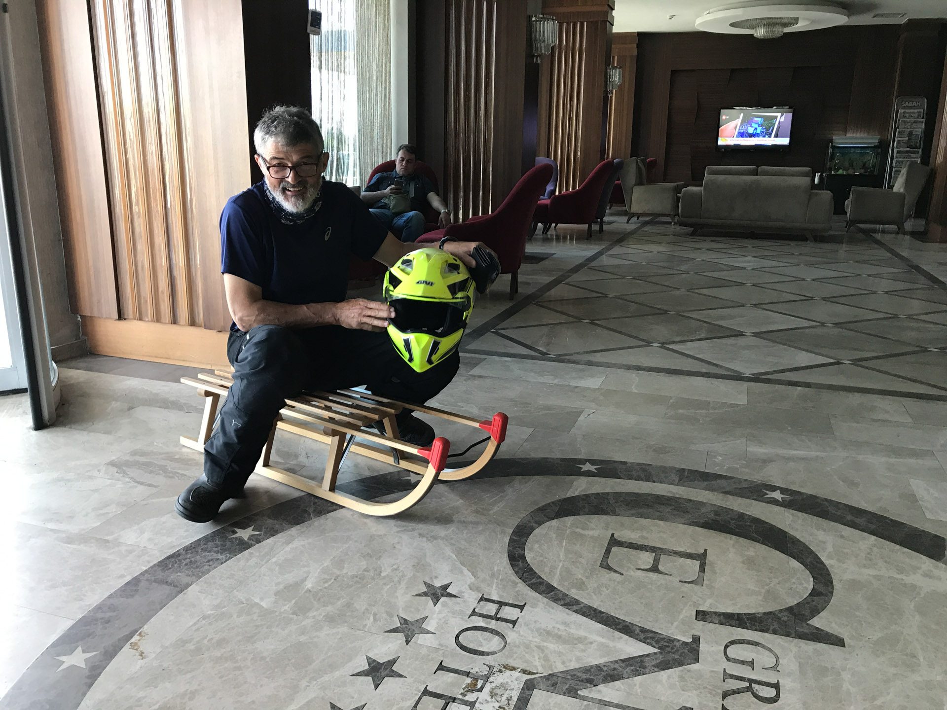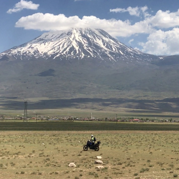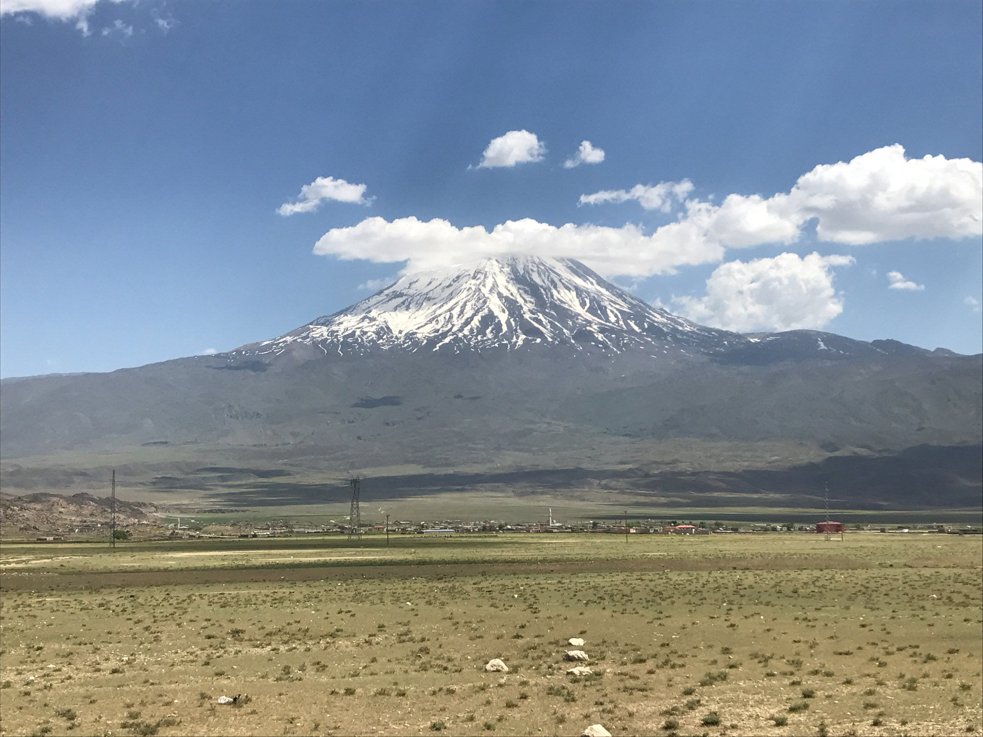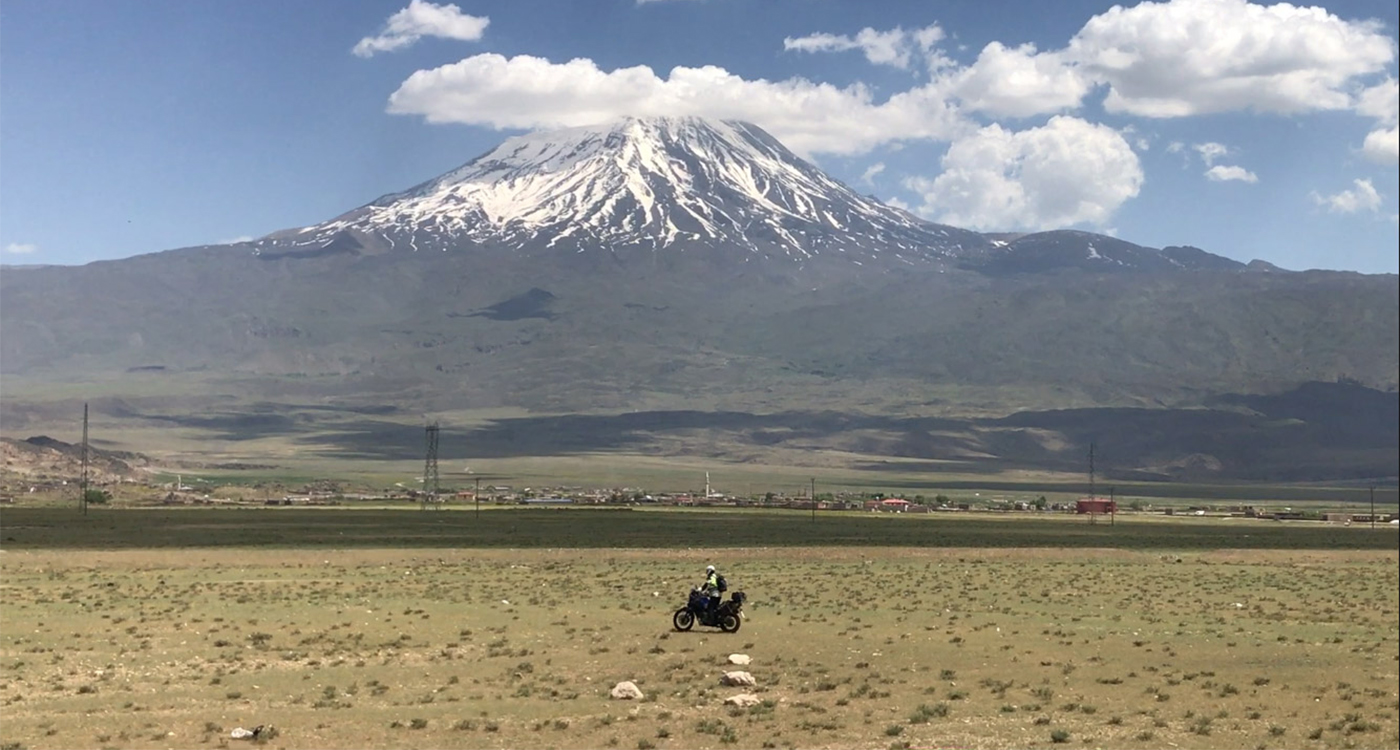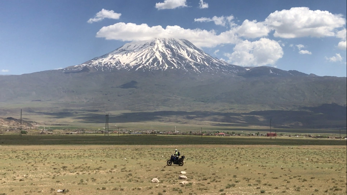 After leaving and travelling 130Km, we arrive in Agri and the town of Dogubayazit near the border with Iran. Behind the plains you can see the sloping summit of Mount Ararat, standing 5,137m high, on which, according to legend, is the location where Noah’s Ark was stranded. While we wait, we meet a lonely cyclist, Alessandro, a Spanish guy from Alicante, who has been pedalling for more than four months in his pursuit to reach Thailand.