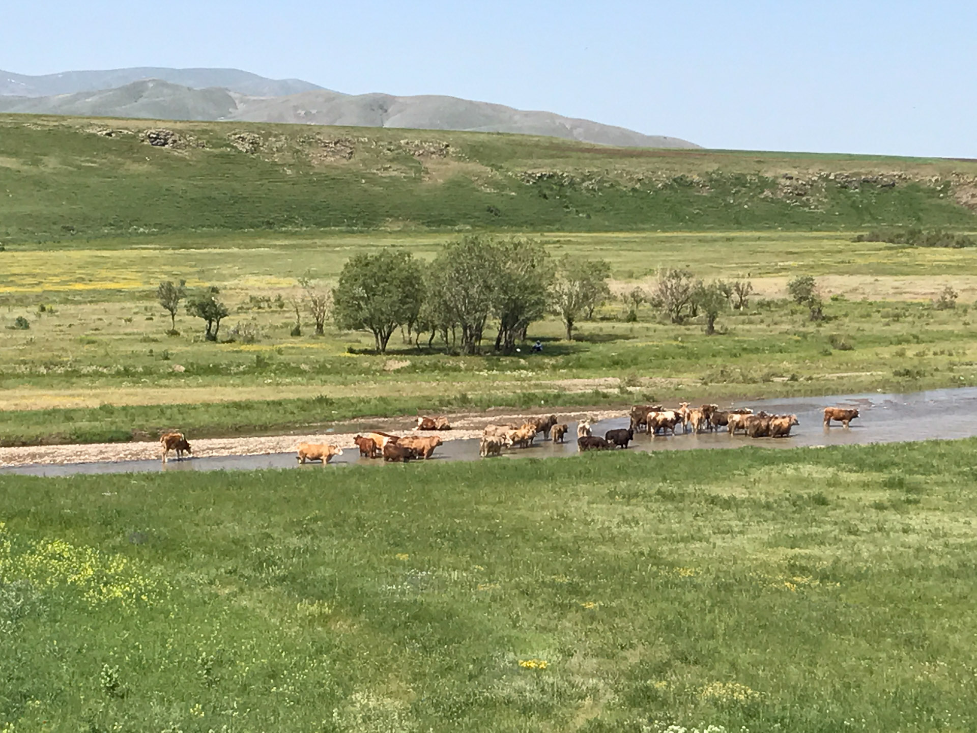 Behind the plains you can see the sloping summit of Mount Ararat, standing 5,137m high, on which, according to legend, is the location where Noah's Ark was stranded