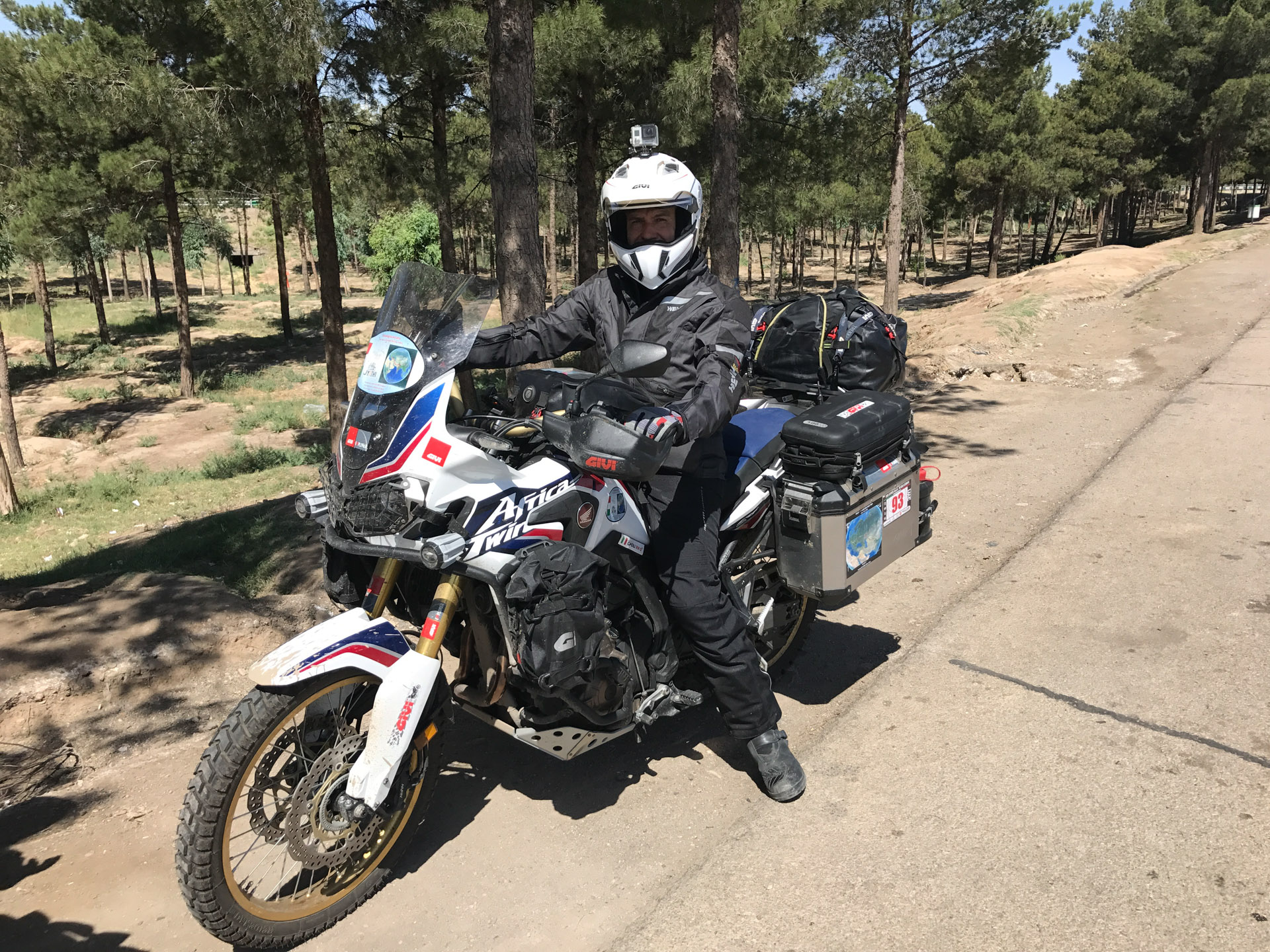 The Iranians show themselves to be extremely kind and accommodate us in a small room where an English speaking officer interrogates us on our trip and informs us about hotels and hotel exchange rates. In this new country we need to once again adapt to the poor conditions of the roads that are full of pot-holes, especially in the towns, with intense traffic and the reckless driving of the local Iranians. Riding around in the coming days will need our full attention. For several kilometres we travel through a partial desert-like area, sparsely inhabited and very hot. Around dusk we arrive in Tabriz, a major city with its one and a half million inhabitants. The usual chaotic traffic adds to the sociable response of many Iranians who greet us with their beeping horns. Tomorrow we will arrive in Tehran. Whilst the road should be good, the heat will still be with us.