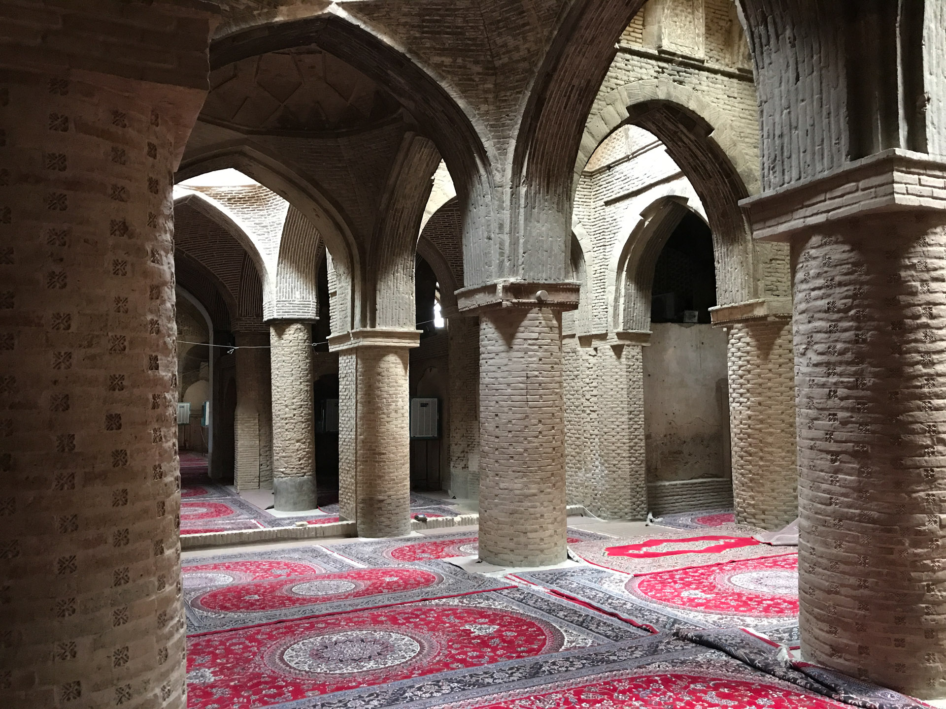 After another stretch of plain hot desert we stop at Meybod where, inside a well-restored caravansary, we admire an Abarbar Kelar: a water tank with 4 wind towers that move the air and keep the area refreshed.