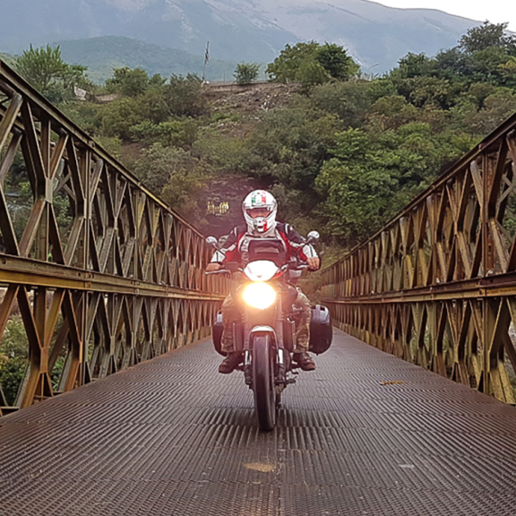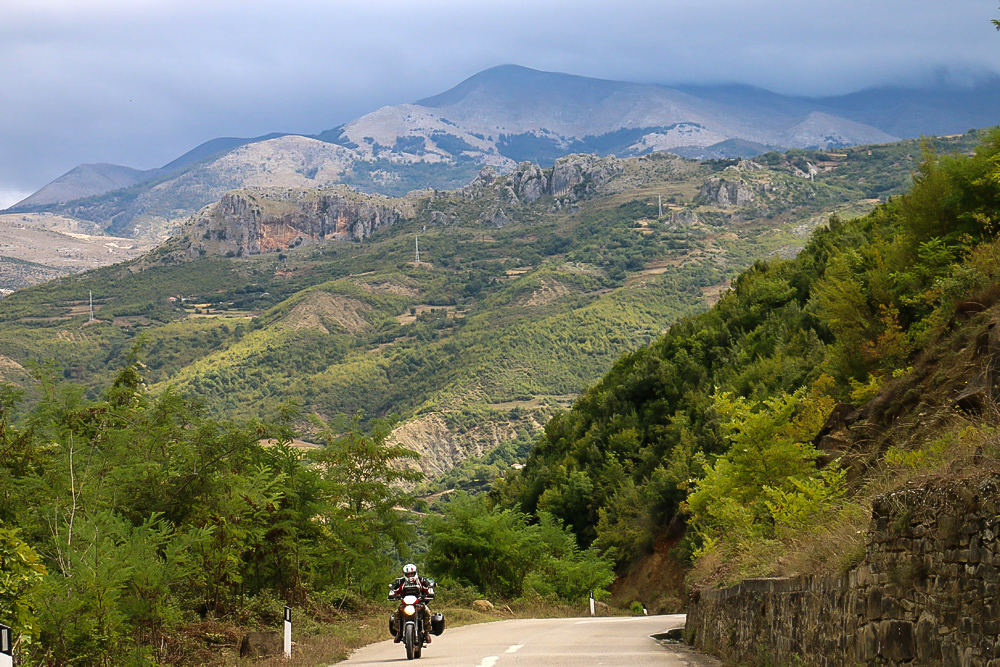A road that was built by the Italians during the Protectorate period of the 1930’s and today is perhaps still the most evocative location in the country. We cross the Llogara National Park, characterised by untouched nature where the summits of the Malet and Vetetime Mountains are often wrapped in cloud, running along an angled road that all too soon catapults the rider to the sea.