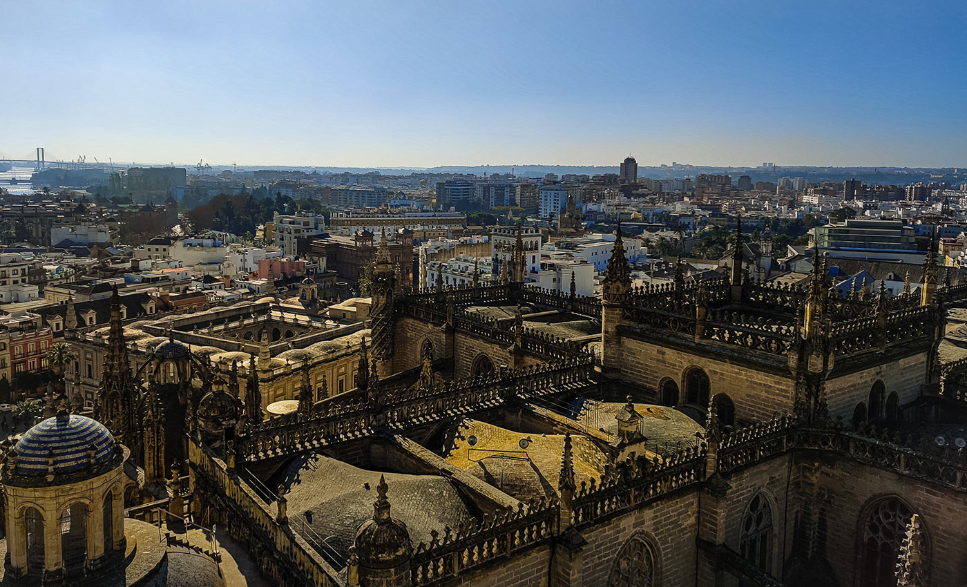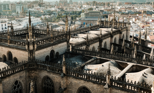 The cathedral is the largest Gothic church in the world, built on the ashes of the mosque of which it still preserves the ancient minaret, converted into a bell tower, the Giralda.