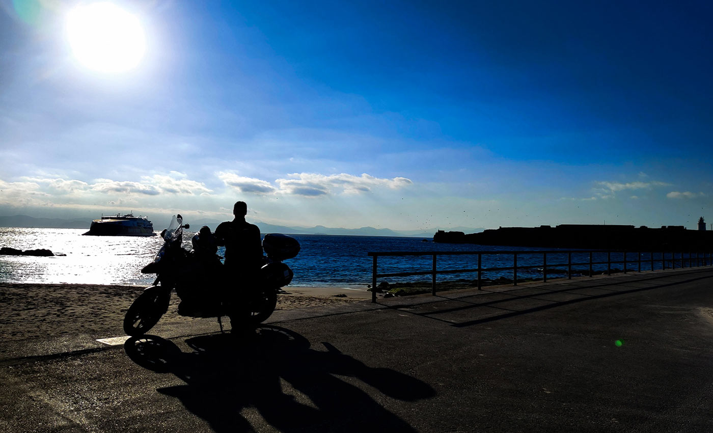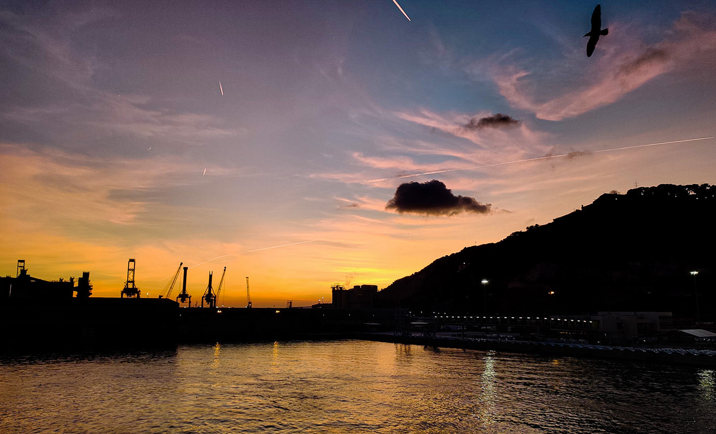 After crossing the vineyards of Jerez de la Frontera and rolling hills, we reach the Strait of Gibraltar just in time to see yet another sunset to be framed and the lights turn on in the houses on the other side of the sea, in Tunis.