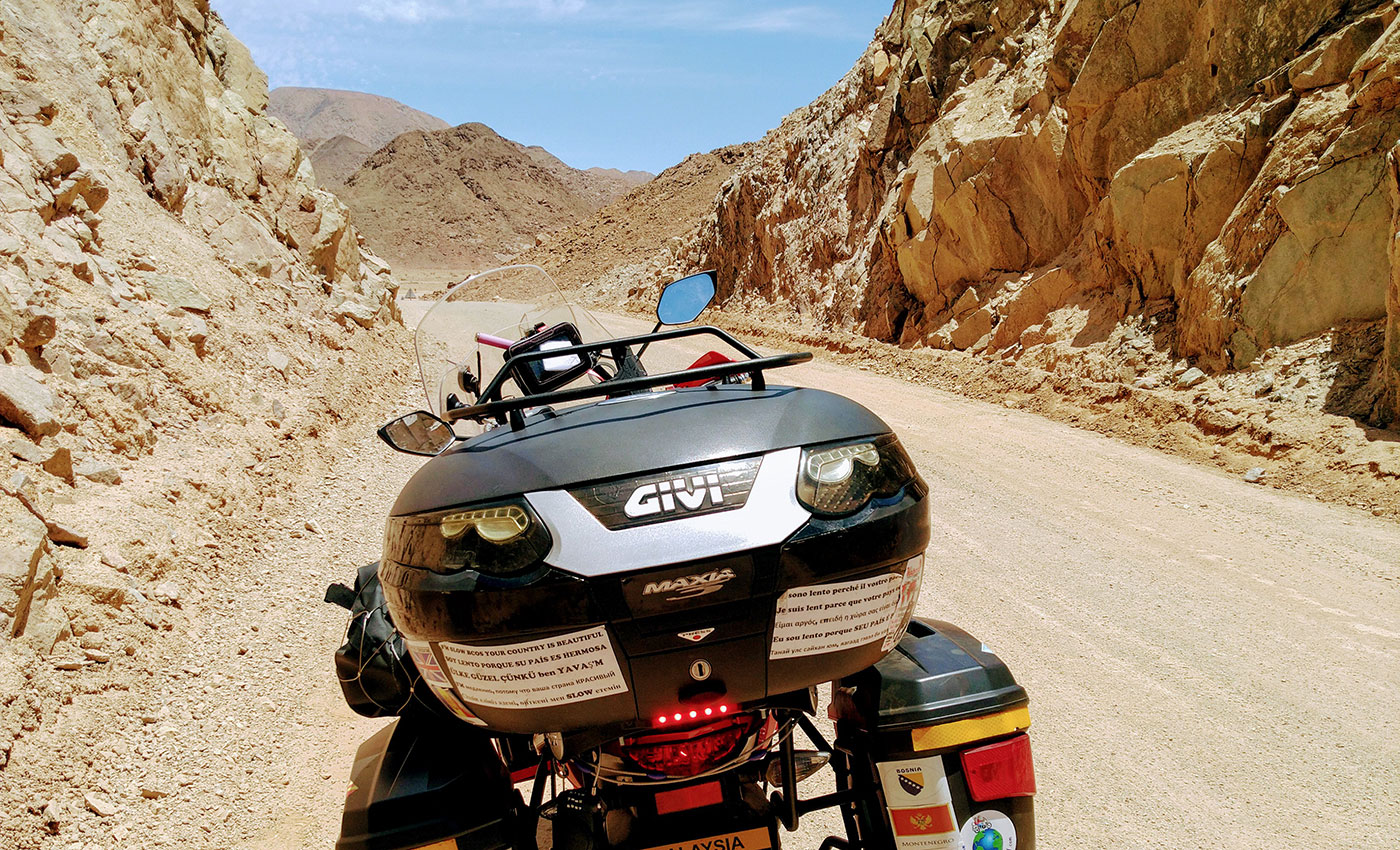 Border crossing was easy. Once done, I took C13 route as suggested by my advrider friend, Uwe. The view of the barren mountains along the way to Aussenker was very nice. At times, I felt as if I was in Chile. Despite the barren land, there were green vineyard fields which I saw. Workers, loaded at the back of a lorry were transported from their village to the field. Their houses in the village were mainly made from zinc and sticks tied together, and very small.