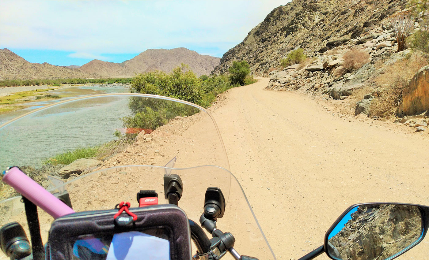 The paved road finished very soon and was replaced by dirt road along beautiful Orange (but blue) River. It was indeed a breath-taking ride on C13. 100 km on dirt (sometimes corrugated) and certain stretches on gravels which I can do 60 – 80 kmh but taking 2 hours to complete due to stopping too many times for pics. However, it was a very hot day and I almost passed out by the time I reached Aus after riding 11 hours under the blazing heat and not so friendly wind.