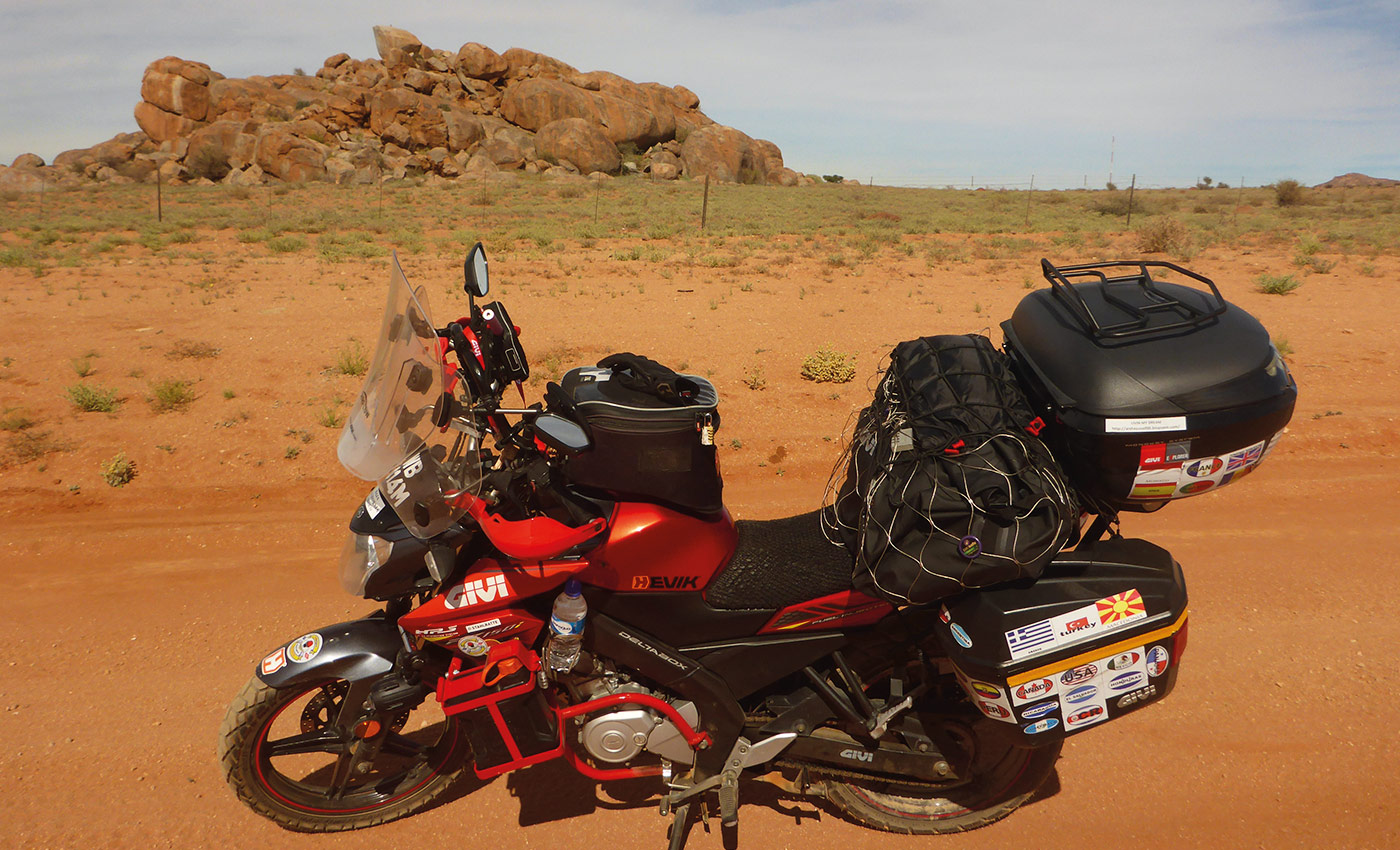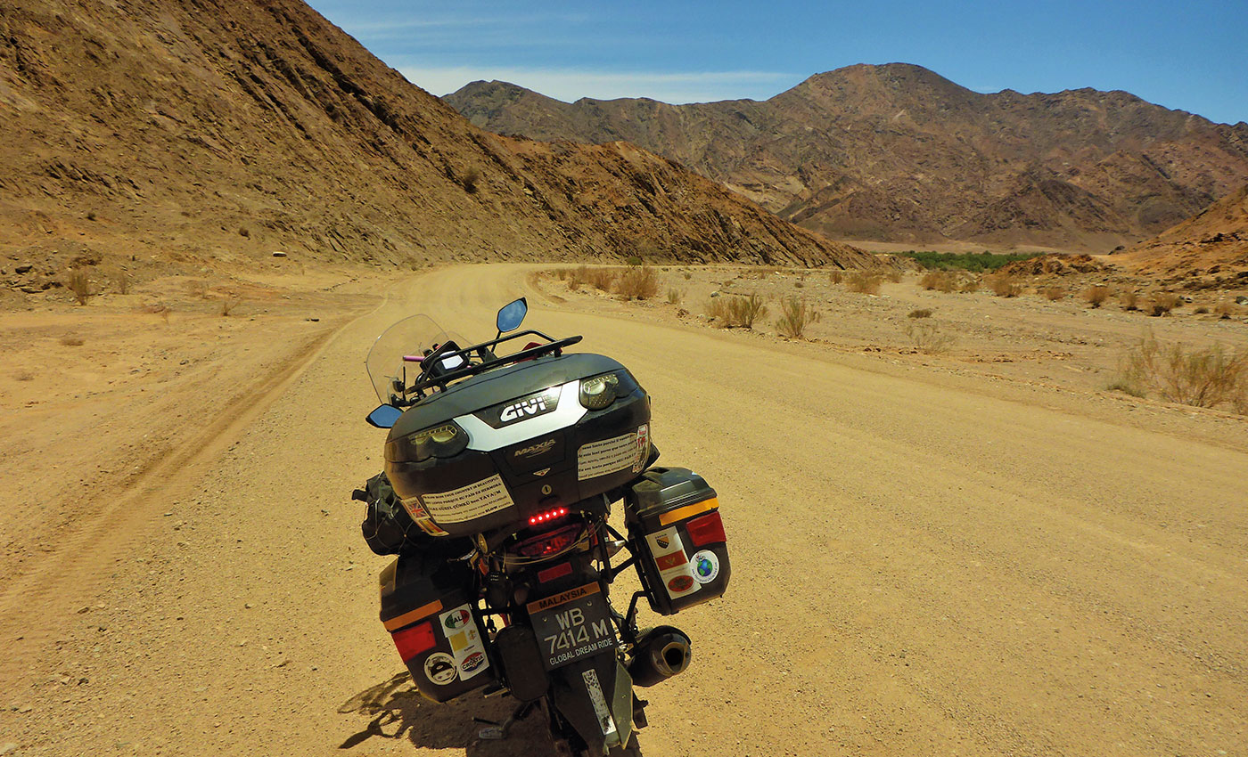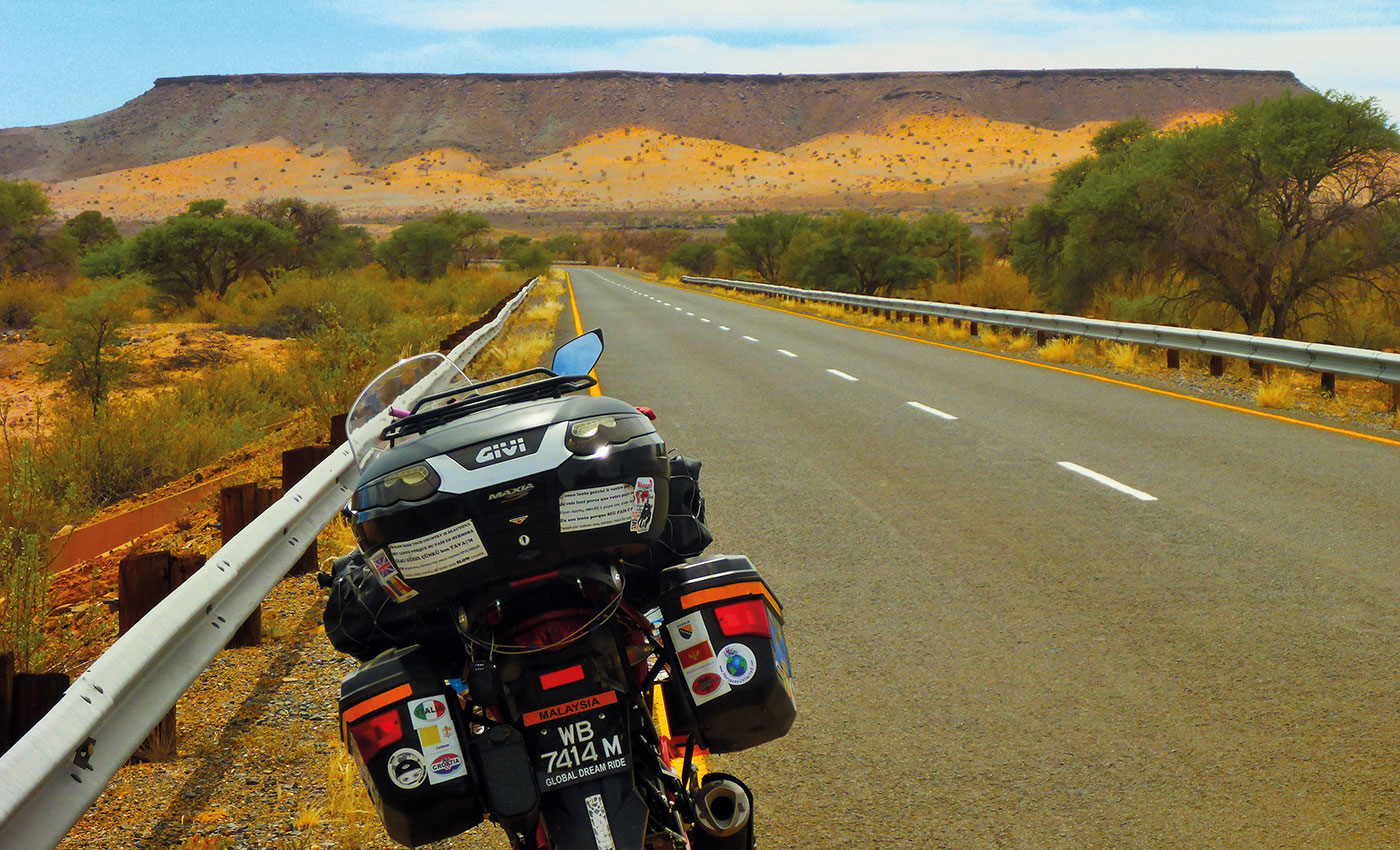 Later in the afternoon, I started to feel some wind and decided to stop for lunch at Mariental. I pulled over at a rest area. My butt was so sore and my hands were numb after the long ride without any rest. While enjoying my packed lunch, I saw a barefooted boy running towards me. He sat on the opposite bench and looked at me with his sad eyes. After a while, the boy started to dig into the garbage bin. He found a bottle of unfinished Coke and drank it. He continued digging and later found a milk box. He shook the almost empty box and tore it to enable him to lick the remaining milk. I was witnessing all this as if watching a drama shown on TV.How my heart fell for this boy. Especially when he looked at me again and asked, “Mem, can you buy me some food?” I really couldn’t hold my tears anymore, but I didn’t want to cry in front of him. I hurriedly put on my helmet, opened my top box, grabbed a packet of biscuits and some money and shoved it into the boy’s hand. The boy ran quickly to another small kid, whom I believe was his brother. I continued riding with tears streaming down my cheek recalling what I had just seen. I’m sure this won’t be the first and the last drama that I’m going to witness here in Africa.
