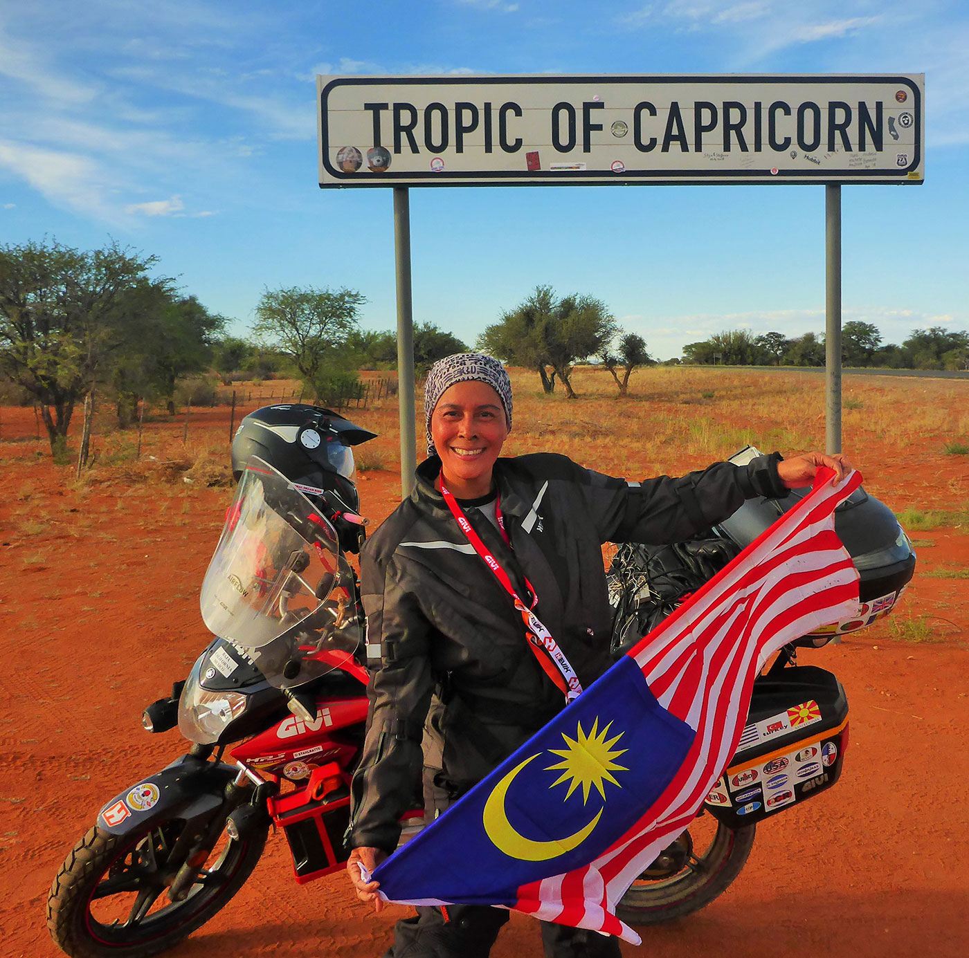 It was a struggle to reach Windhoek. The wind, the long straight road, the heat…my lips were cracking all over and felt very painful. However, I can’t miss the opportunity to pose in front of ‘Tropic of Capricorn’ signboard”.