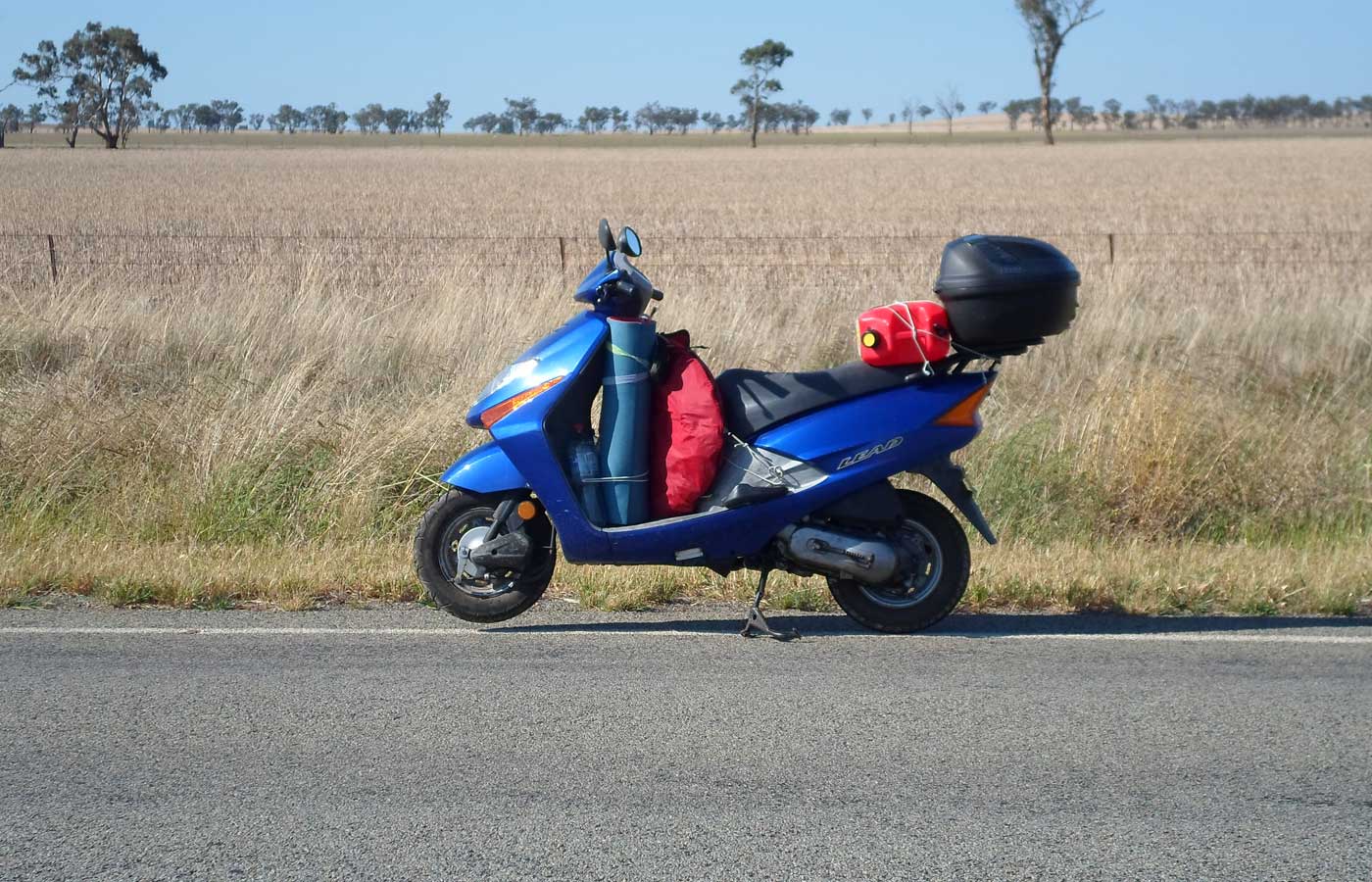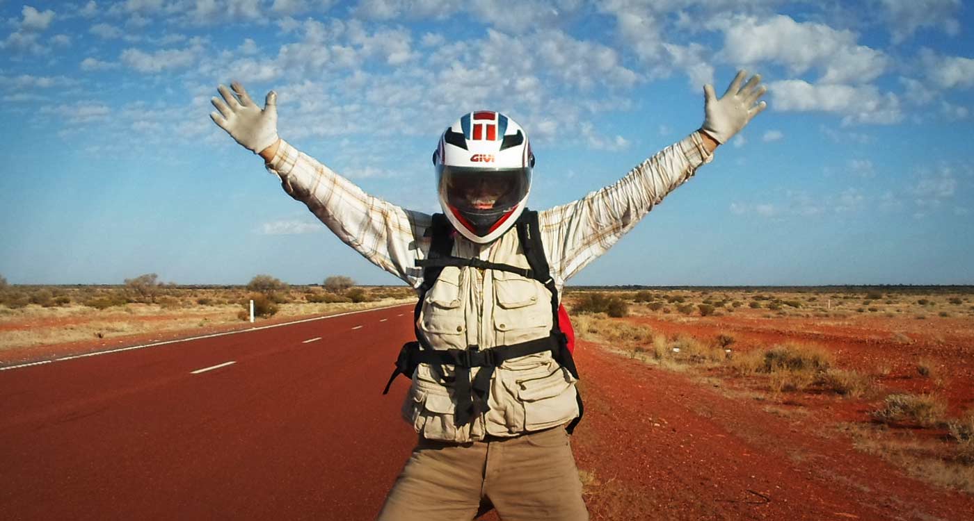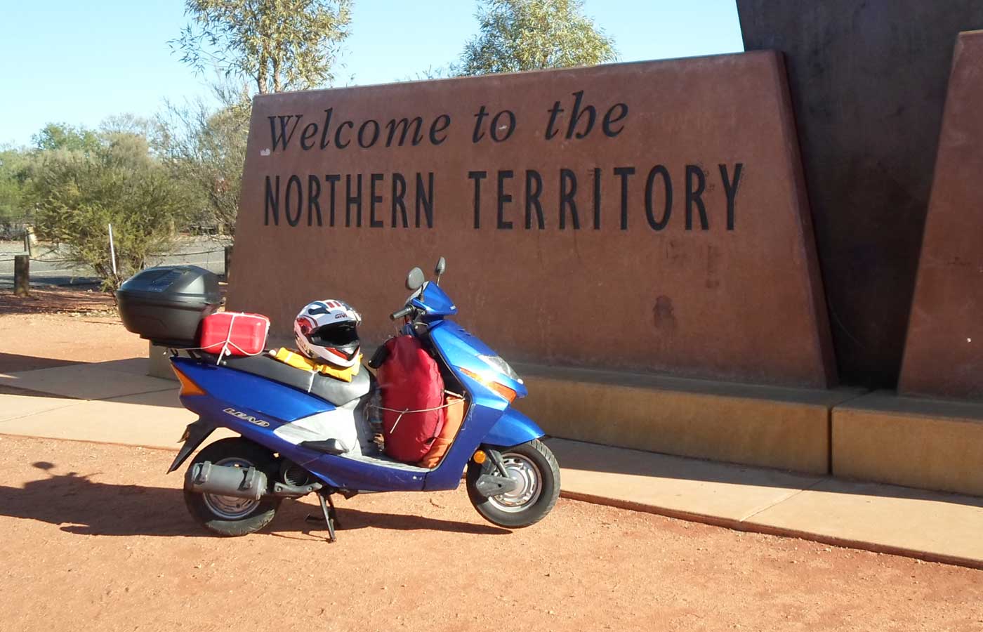 12 days, 6,000kms alone on my Honda Lead 100. I leave from Coogee, Sydney, and I start riding through New South Wales. On the first day I stop at Jugiong, on the second, after 516kms, I reach Balranald. From here I leave to cross the border with South Australia and I spend the night in Berri. The following morning another 560kms await me passing through places such as Barmera, Waikerie, Burra, Spalding, Gladstone, Laura, Wirrabara up to Pimba. The fifth day is a long stretch (517kms) to Marla, where I start on the sixth day to go to Uluru and finally I reach Ayers Rock. I stay there one day, then I start my journey back through the Northern Territory. I partially retrace my steps, passing through Marla for example, then I pass Port Augusta, Wilmington, Morgan and I sleep in Mildura. In the morning I head for Balranald and via Hay I reach Narrandera. The last day I ride for 596kms: Grong Grong, Coolamon, Junee, Cotamundra, Bathurst, Katoomba… and in the end I see Sydney once more.