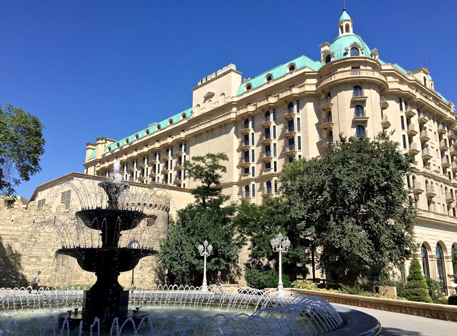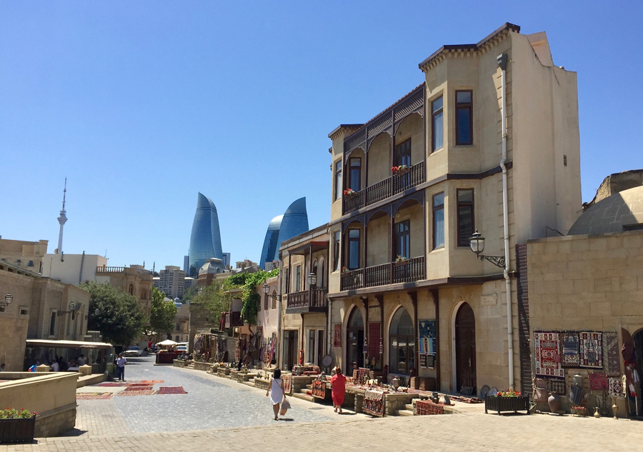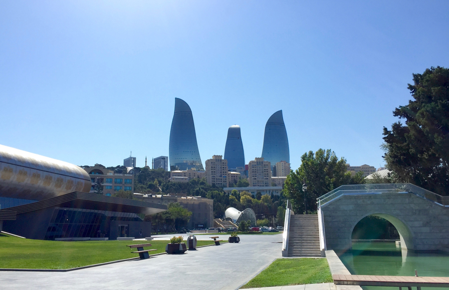 Baku is beautiful! For several thousands of kilometres we were far from urban areas and suddenly we find ourselves in the equivalent of a European city. The city has almost completely been freshly restored and the historic centre is a must-see jewel. There is a part dating from the beginning of the century that could almost be Paris, if not for the colour of the stone used, and a park full of fountains and picnic areas runs around the medieval walls. Inside the walls there is an older historical centre, still lived in, where you can lose yourselves in the classic maze of narrow streets. Taking the underground and the cable railway you can reach the iconic Flame Towers, headquarters of the national company that extracts petrol and other offices; the facades are covered with 10,000 LEDs and by night the towers in the shape of flame become enormous ‘flaming’ screens.
