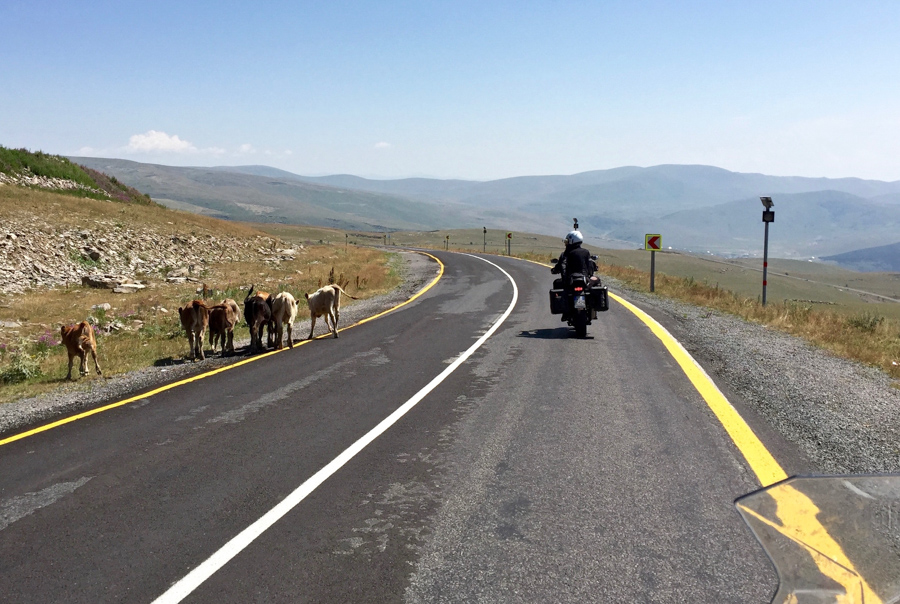 Up to the Turkish border, still mindful of the disaster of the outward journey, we choose to go the other way, the one further south and more winding… beautiful! It rises onto a plateau with non-existent traffic and we flank a couple of great lakes in a bucolic atmosphere where we can finally unleash the bikes’ horsepower. Really recommended to anyone travelling in those parts, categorically excluding the northern route. You get close to the border with Armenia, you can almost touch it, but reluctantly we point the handlebars toward home because we need to get back. We will cross Turkey again doing more or less the same route as the outward journey, taking the parallel valley just for a change of scenery.