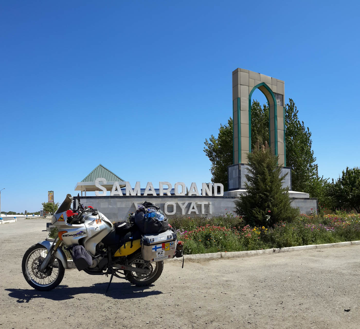 In the meantime, the landscape changed again and the cultivated fields were replaced with large areas of flat grassland (steppe) and then the desert. I found the streets of Kazakh to be literally “demolished” and I had to ride carefully along a road covered with real holes. I saw camels slowly crossing the road and one simply stopped eating, raised his head and looked up at me.At Beyneu the road ended and became a track all the way to the border with Uzbekistan.After entering Uzbekistan I continued to Khiva, an ancient crossroads of exchange along the Silk Road. I experienced great difficulties in finding fuel for my motorcycle. In this country, cars use propane gas so petrol is hard to find and in some places, petrol pumps have been completely removed. I managed to fill my tank by relying on the Black Market, where fuel was being sold at European prices.Thanks to complications at Customs and the search for petrol, night fell before I had a chance to find accommodation and I found myself riding in complete darkness along a crowded road, with animals crossing repeatedly, not to mention cars and carriages and none of the vehicles had lights.I found a bed, lodging with a family who ran a tea house and I was finally able to rest for a few hours.