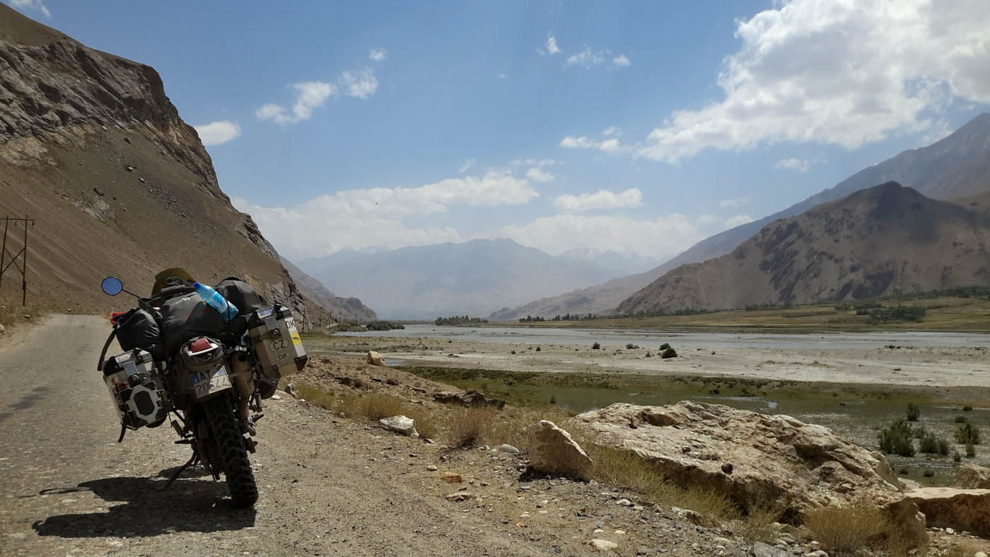 During the following days I visited Khiva, Bukhara and the most famous Samarcanda.All beautiful cities and each featuring fascinating monuments and extraordinary architecture.Khiva appeared to be the most well preserved and authentic with large, ancient walls that defend the city. Bukhara struck me with its squares and fountains and finally there is the legendary Samarcanda, one of the oldest cities in the world and the city that benefitted the most commercially during the time of the Silk Road. In 2001 Samarcanda was declared a UNESCO World Heritage Site.After spending a few days as a tourist I travelled to Tajikistan, a beautiful nation that borders the fascinating and ravaged Afghanistan.The roads in Pamir reach over 4,600 meters in altitude, like the AK-BAJTAL PASS.The scenery is fantastic: mountains of over 7,000 meters surrounded me in the Wakhan Corridor. I rode along with the Panji River on the right and the Hindu Kush Afghan Mountains on my left.I reached out to greet many peasants at work in the fields and they responded timidly with their hands.