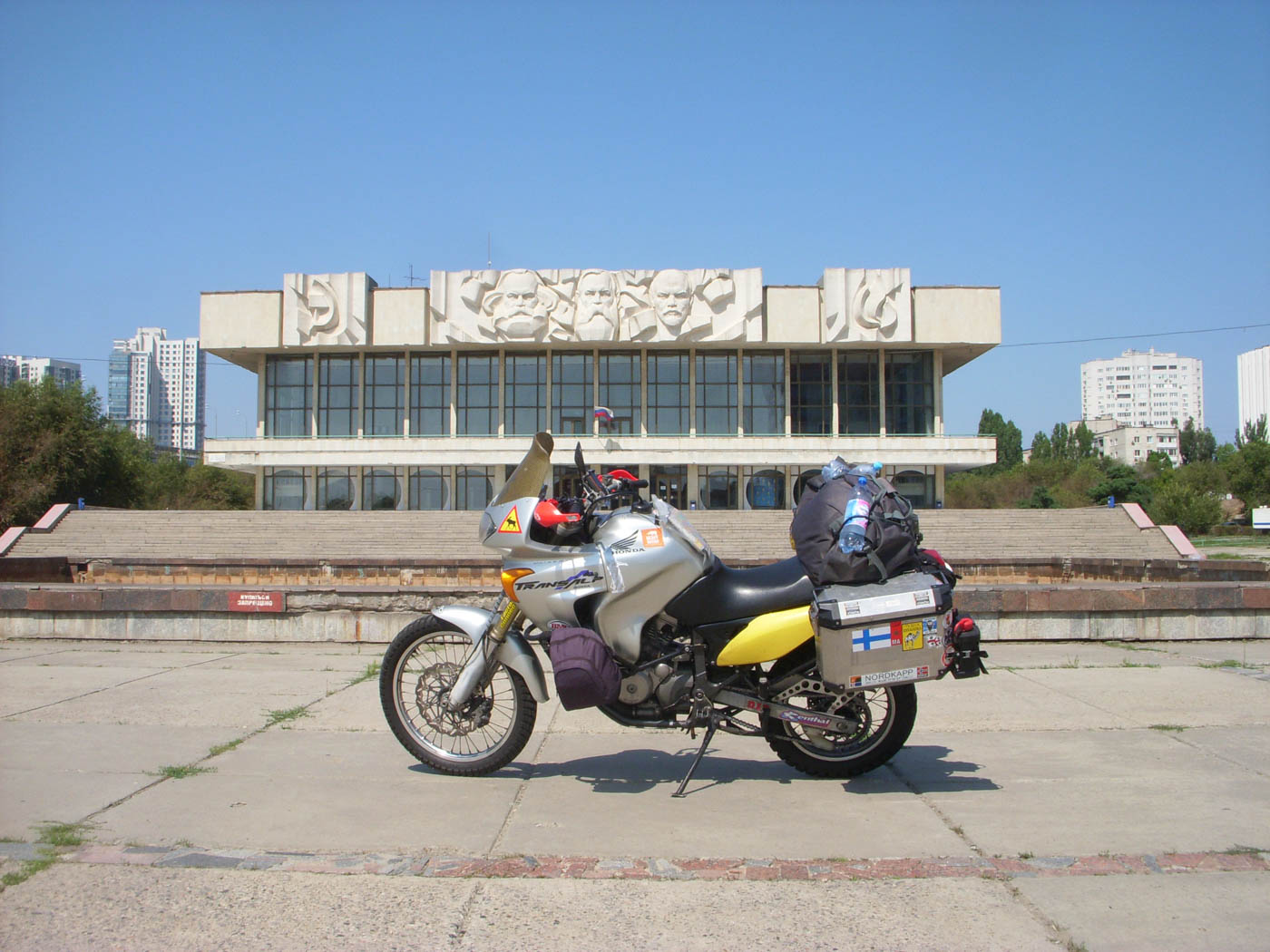 With my historic and beloved Transalp 650 I left Italy at the end of July and quickly crossed through Austria, the Czech Republic and Poland.When I arrived in Belarus, I noticed my surroundings change as I left behind me the “wealth” and the typical Western Europe that I know. Entering Belarus made me feel part of a postcard that I had seen plenty of times in magazines and on television. Some clapped-out old vehicles including the typical Soviet-style cars accompanied me along a road dotted with signs written exclusively in Cyrillic. My route was taking me to Moscow and then south into Central Asia.