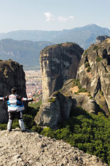 The next morning, we crossed the marvellous Peloponnese peninsula from east to west, making a unique and utterly unforgettable stop at the Meteora complex. With its name meaning “suspended in the air”, you simply must experience these roads on two wheels at least once in your life… Just make sure to pack a Givi flask with your luggage, because the heat is truly intense!