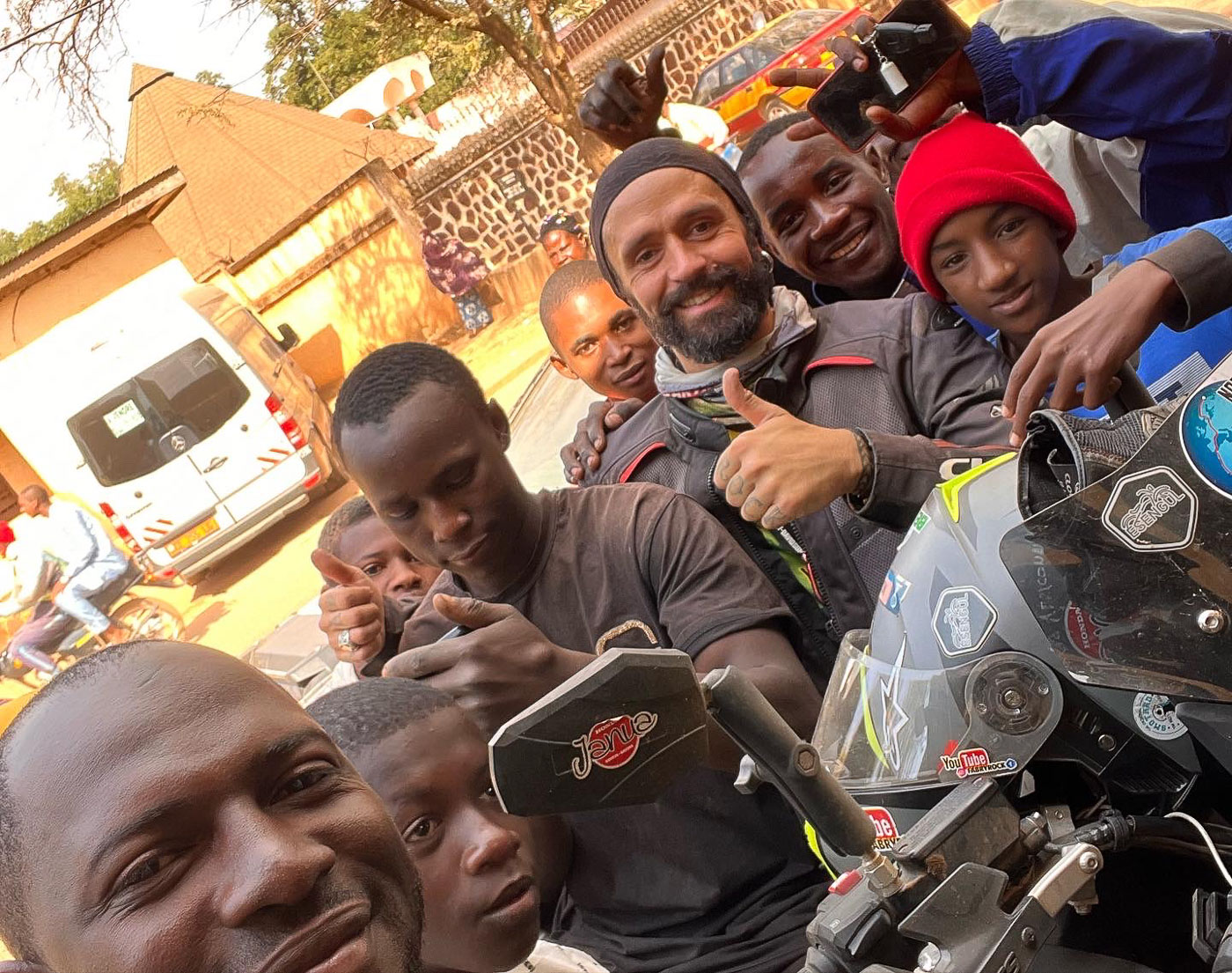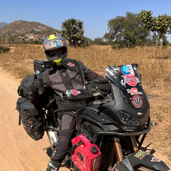 I immediately stop to inspect the motorcycle and notice at once that the rear rim has been damaged and the tyre is losing pressure! I pump up the rear tyre with the dented rim several times with my Bosch compressors, and manage to make it to a hotel in Ngaoundéré (after 150 km by road) by the skin of my teeth.