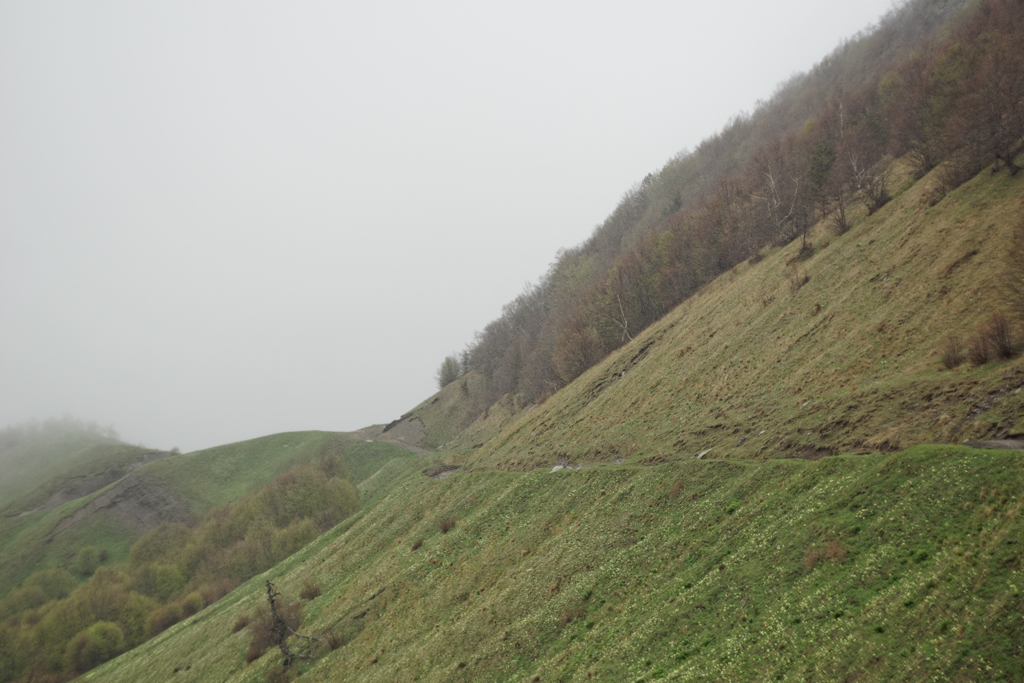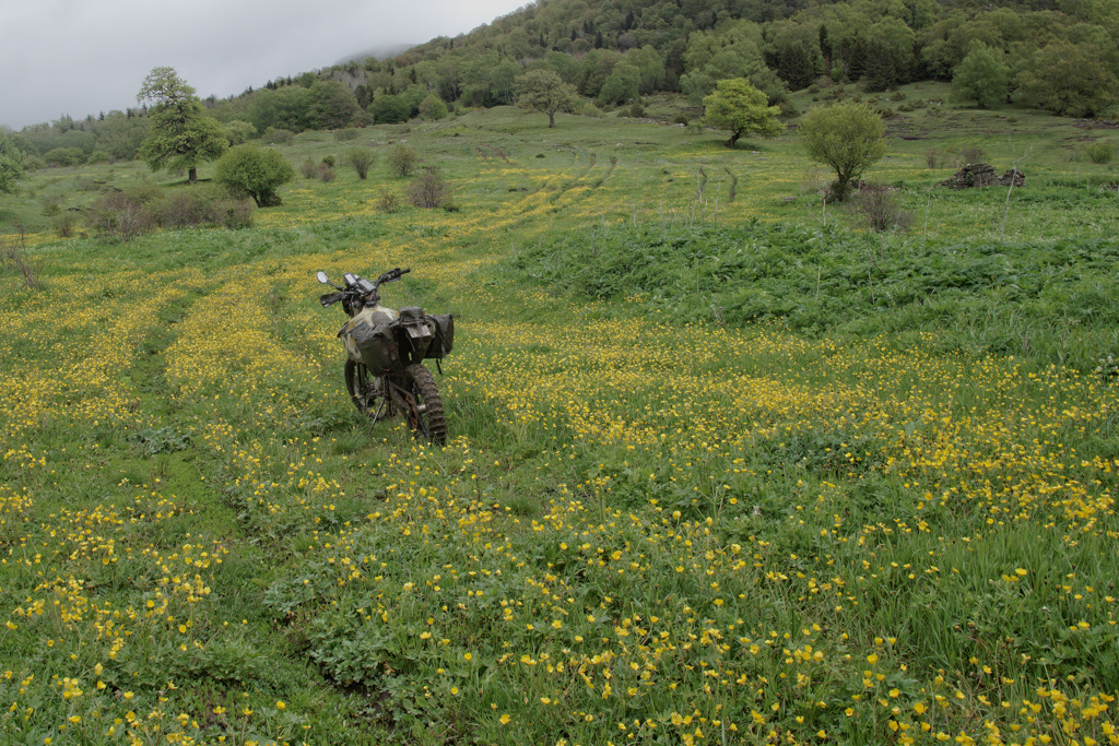 The last major off road involved a mountain ride between Tsalka Reserve and Algeti National Park up until the village of Rkoni, from where the road leads to Gori. Like the entire May, the morning was wet and misty. The people from the last village before the mountains discouraged me from taking that route.