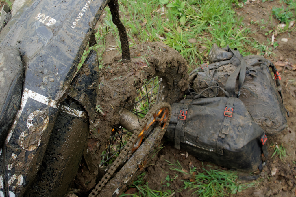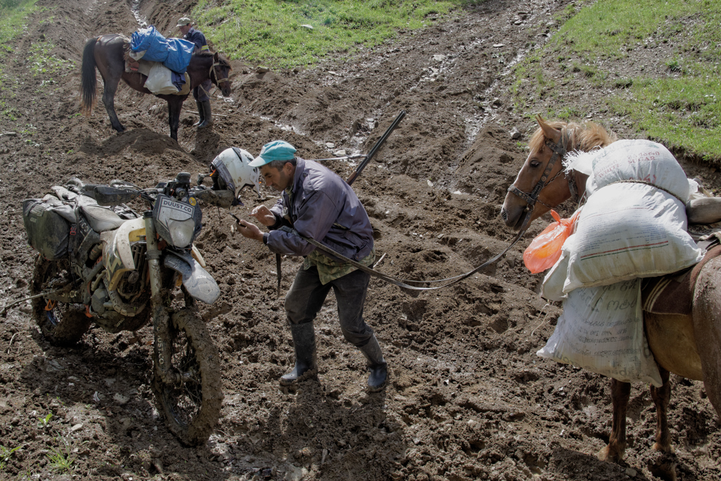 I covered the distance of 30 kilometers at a snail’s pace, repeatedly rescuing my motorcycle from mud traps.