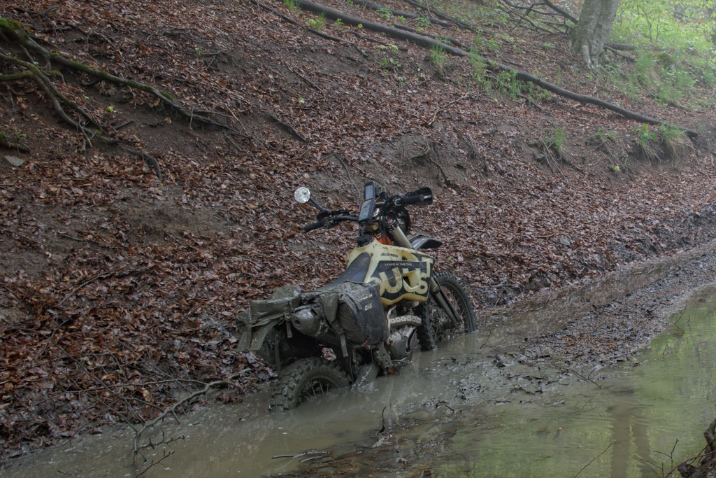 The first overnight stay on the tourist track in Czeremcha village on the Polish-Slovakian border. Then a short stay in Slovakia and Hungary. The motorcycle is performing flawlessly. The main modifications made to the factory version include a new seat, roadbook carrier and a larger, 21 litre tank.