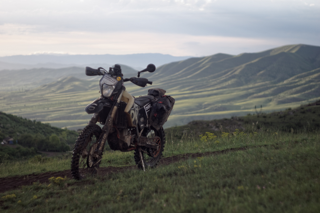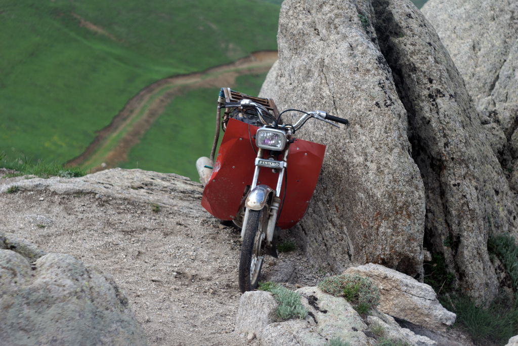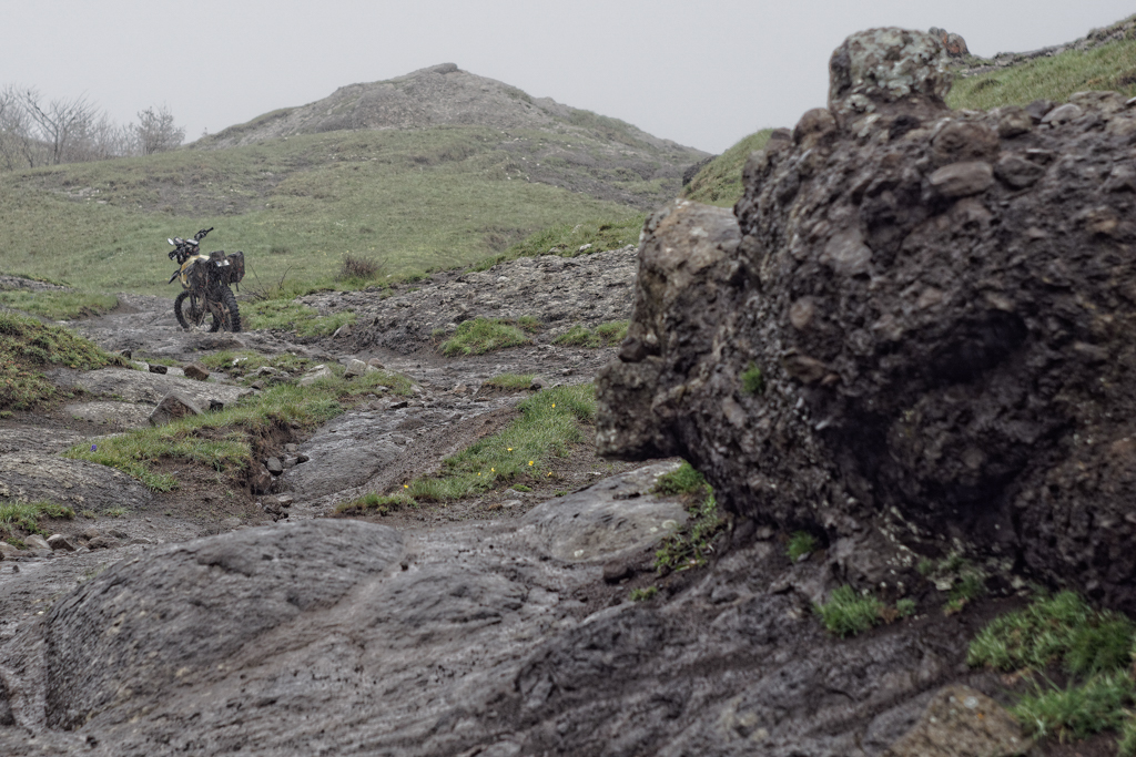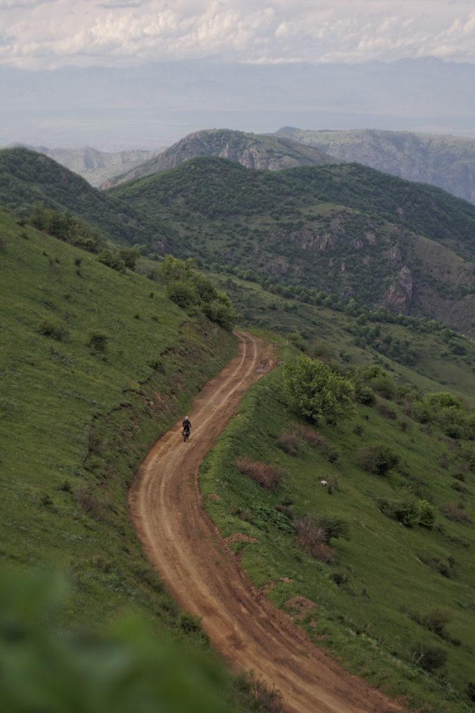 The hilly terrain of south Armenia begged for wild exploration. I replaced my already bald Michelin Dakar Race tires with motocross tires by an Iranian company Yasa.