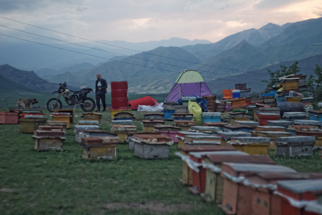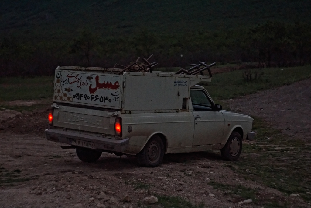 I decided to spend the last night before my departure from Iran in good company. It happened to be a beekeeper and his dog. At first, the dog seemed quite hostile towards me. The beekeeper advised me to set up my tent next to his so that the dog would treat me as a friend.