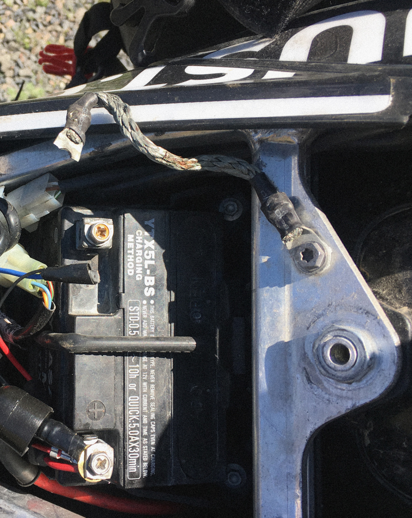 The next morning could be the last day of my journey. I caused a short-circuit, which turned the heated grips wires into a dynamite fuse. Never in my biking history have I removed a seat faster than this. Farewell, heated grips. I won’t miss you.