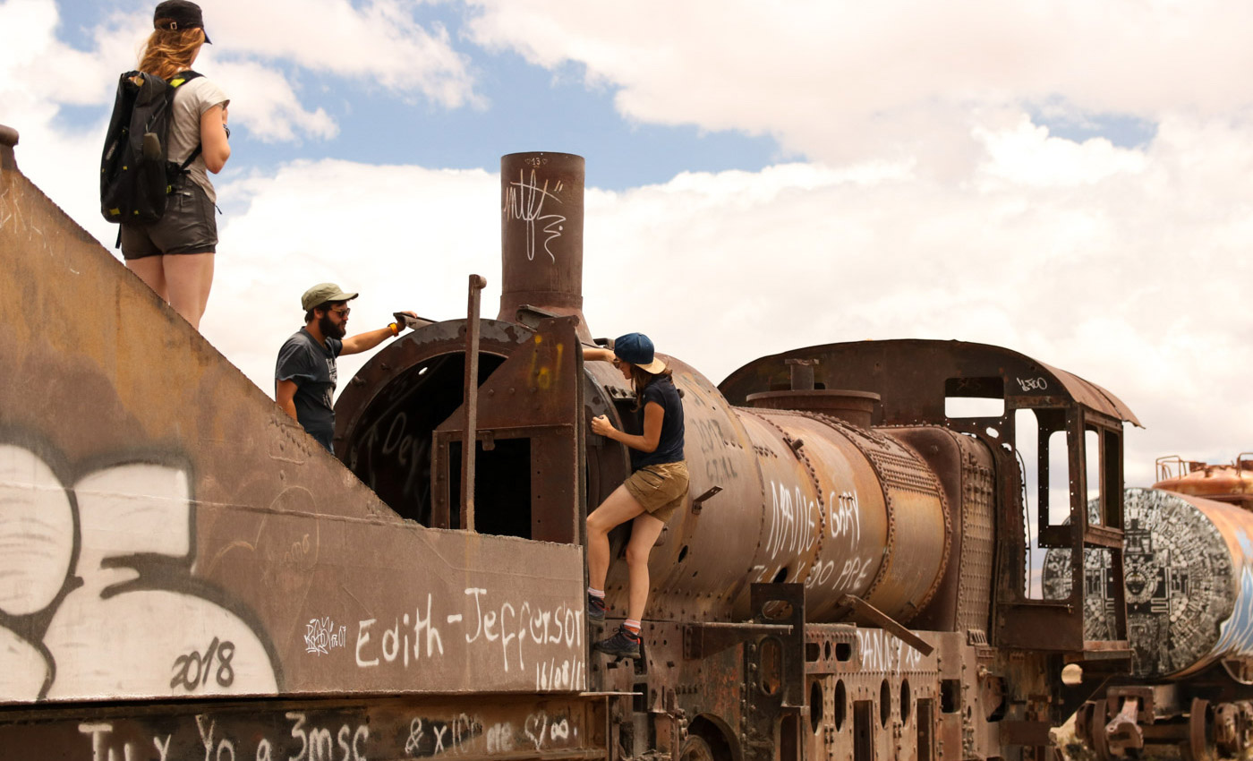 We reached the Salar with a “collectivo” (bus used by the locals). We went to the Isla de Incahuasi, an island made of corals with many cactus. Around there is a white desert made of salt, as far as we can see. This is breath-taking. We watched the sunset and sunrise of the island before to go back in the Uyuni village where we visited the Cemetery of Trains. Many trains have been abandoned and left in the south of the village, this is perturbing to see this kind of “cemetery” in the middle of the desert.