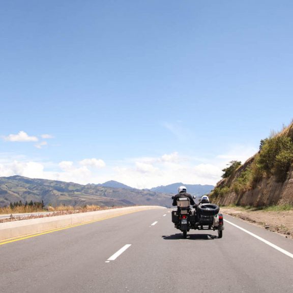 Going back towards the South, we were heading Cuenca. On the way, one of the sidecars lost its trajectory. A big fear for the rider and we noticed that the break disc of the side is not fixed anymore and we lost the struts holding it. We removed the disc and carried on until we’ll find a solution as there is no importer of this break discs in South America.