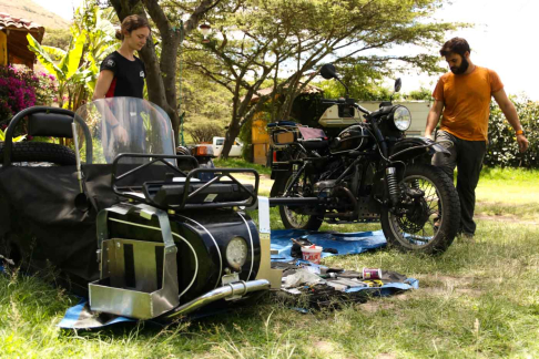 First, we stopped in Ibarra, 130kms away from the border. We were hearing a noise for a little while on one of the sidecars. We previously changed the fuel pump, the ignition coil and the injector but the noise is still there and the sidecar didn’t like the last hills to reach Ecuador. It’s time to stop for some mechanics.