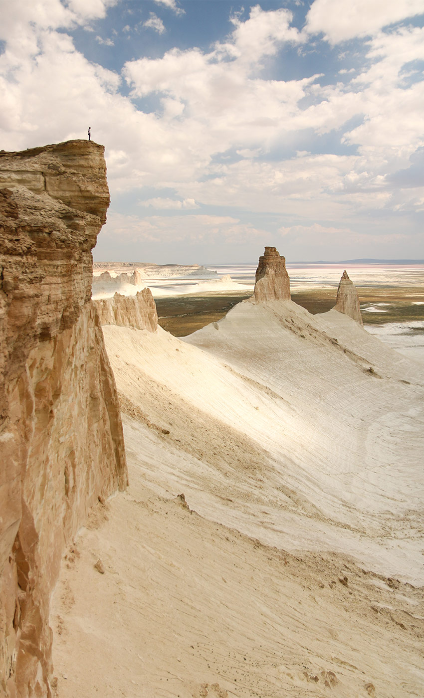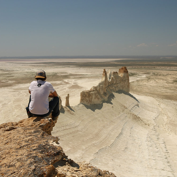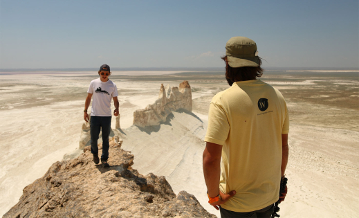 Instead of waiting in Aktau, we decide to go visiting the valley of Boszhira which is 200 kms further. The tracks being in bad conditions and the weather being very hot (38 degrees), we are aware our Ural engines will not appreciate this. To avoid a breakdown in the middle of the desert with no shades, we opt to go with a guide, and his 4×4 car, who knows perfectly the area. The valley is absolutely breathtaking with abrupt cliffs, unusual rock shapes and beautiful colourful mounts. We camp in the valley to enjoy beautiful sunset and sunrise.
