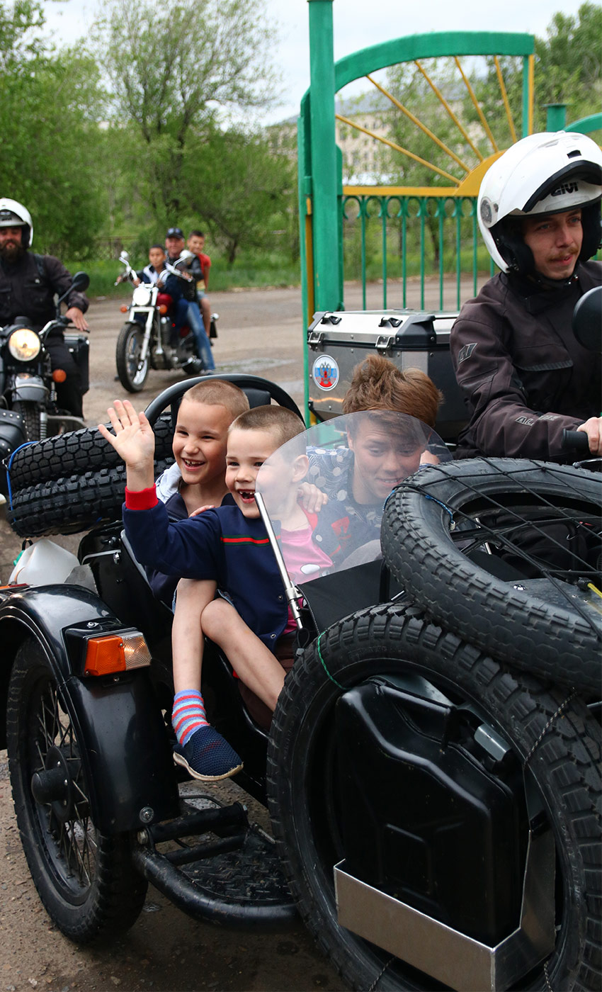 After changing the oil and some maintenance on our sidecars, the orphanage of the city invited the moto club to come along for their last day of school before the holidays. We are lucky enough to join them. An afternoon with big smiles and laughs from the children during motorbike and sidecar tours we did with them.