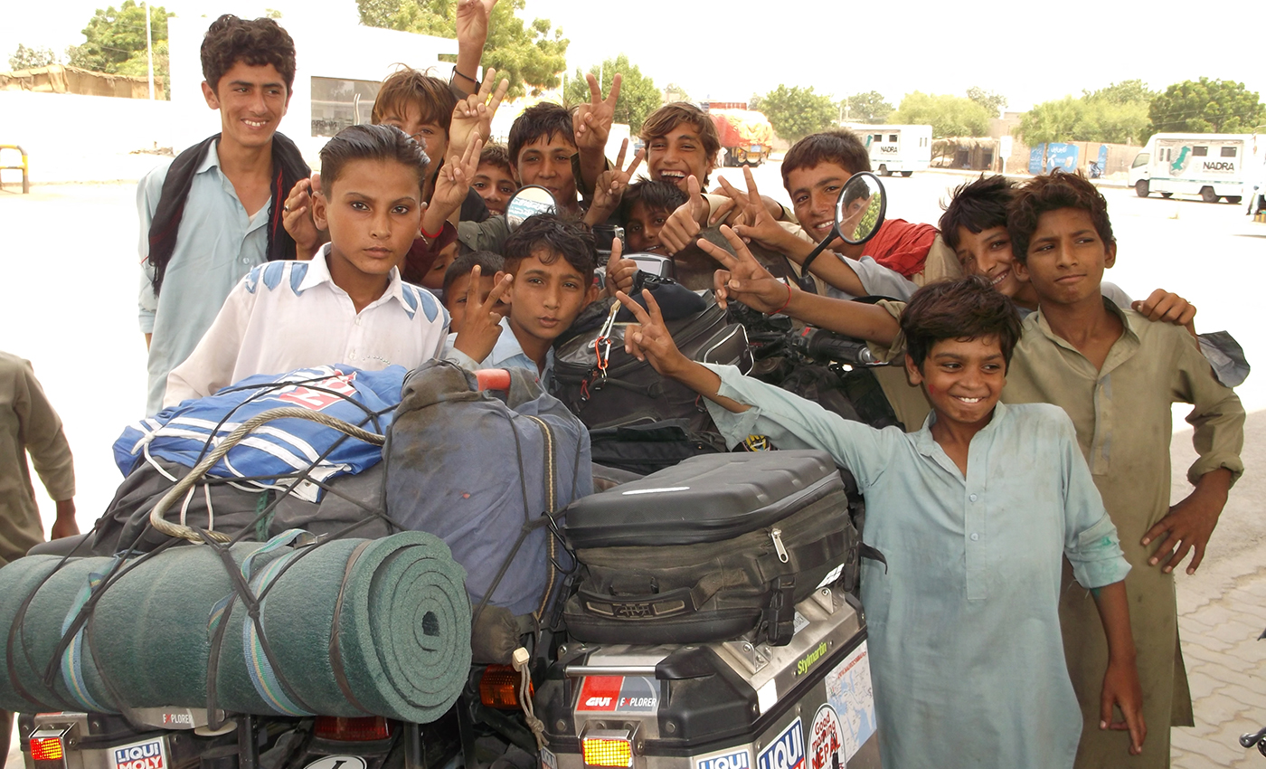 The stopovers continue at an intense rate; every day I am changing locations, hotels, roads, cities, it is a continuous journey, migrating to the East, getting further and further away from home and from my loved ones. From the extreme west of Iran, I reach its far east; I have never travelled so far by land. Before me lays Pakistan. Frightening for many and no less so for me. I have my reservations, perhaps born from the fear of entering this country that has been defined by the media, like Iran, as a “rogue” state par excellence. I spend about a week here, covering the 2000km that separate me from India. It is certainly not a walk in the park, because traveling constantly with protection and an armed escort makes you reflect. However, I meet people who seem “normal” and I make new friends … maybe, it is not all bad here. The heat is remarkable; it never drops below 42 degrees with very high, persistent humidity which does nothing to help with my progress. Sometimes, I find myself thinking about whether I could have done something less difficult, tiring or stressful, instead of being here in the dust and sweating like never before, admiring wonderful landscapes and experiencing unique and extraordinary moments.