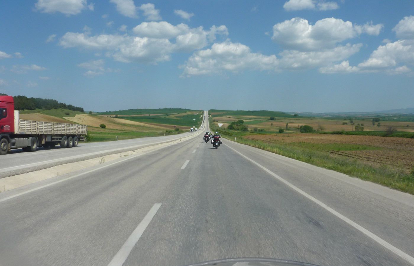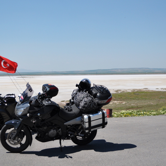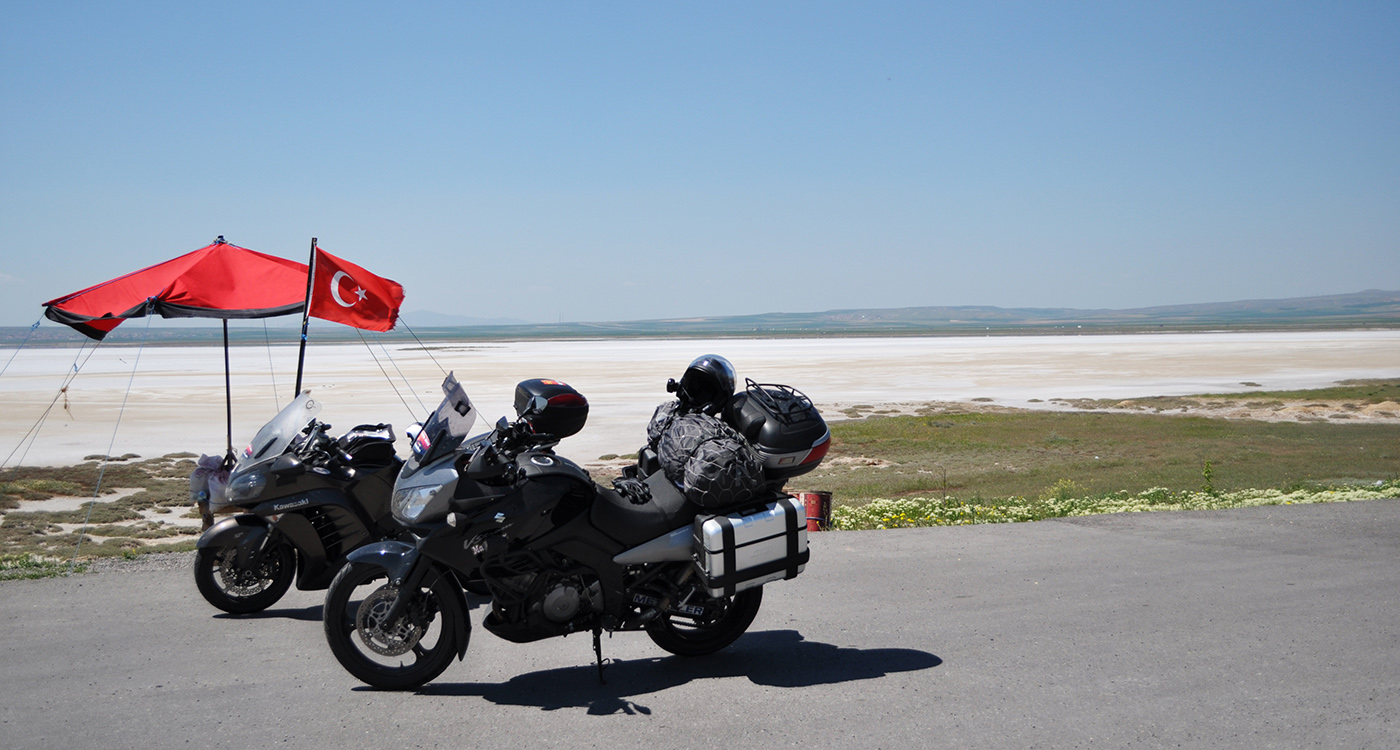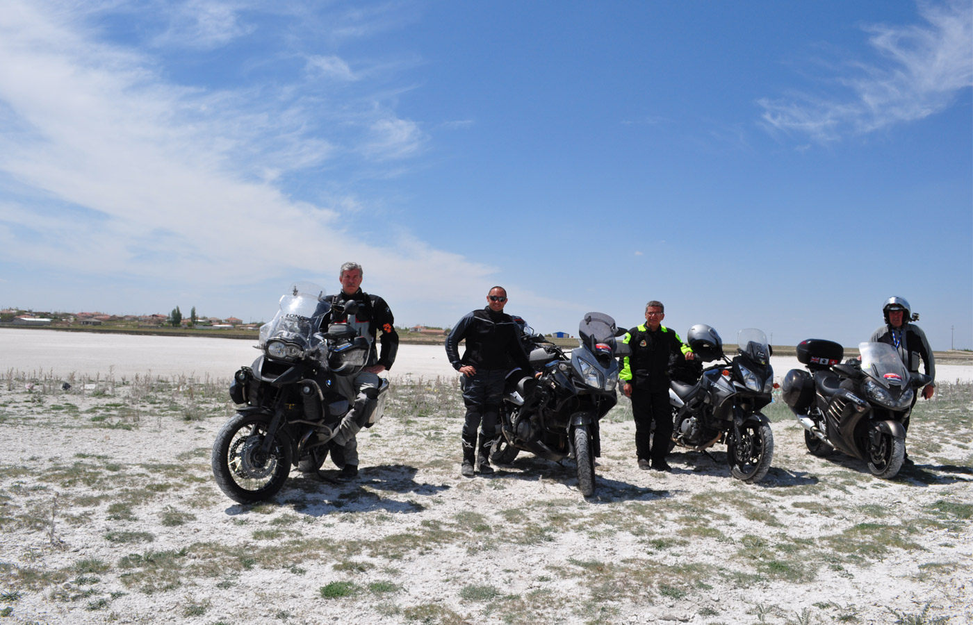The first part of our trip starts with a brief warm-up of the team during the voyage by ship from the port of embarkation, Ancona, to the first stage in Greece, Igoumenitsa. As soon as we arrive we see the bikes and gear… GIVI is with us too: everything’s OK!Fantastic landscapes are awaiting us. In Greece we find the towers with monasteries suspended in the air of Meteora, an incredible view also seen in the James Bond movie For Your Eyes Only. Then Stavros – Thessaloniki, quite a nice little town, where we have dinner keeping our eyes on our bikes, parked out in front of the restaurant tables. But we can’t wait to arrive in Turkey, the Land of the Crescent Moon. In the chaotic traffic of Istanbul we discover the beauty of the Bosphorus Strait, the charm of the Blue Mosque, the dance of the Whirling Dervishes, and that of a lovely belly dancer. We resume our trip along the dilapidated roads that take us to the Salt Lake, Tuz Gölü, a huge white expanse that becomes dazzling in the sunlight. Incomparable!We then arrive at Uçhisar in Cappadocia, the austere town whose fort is a huge peak of volcanic rock perforated by a thousand cavities. In the nearby Göreme with its Fairy Chimneys, pyramids of friable rock, we feel as if we’re in the midst of a sci-fi film: and in fact, it’s precisely in this valley of lunar atmosphere that some scenes of Star Wars were filmed!