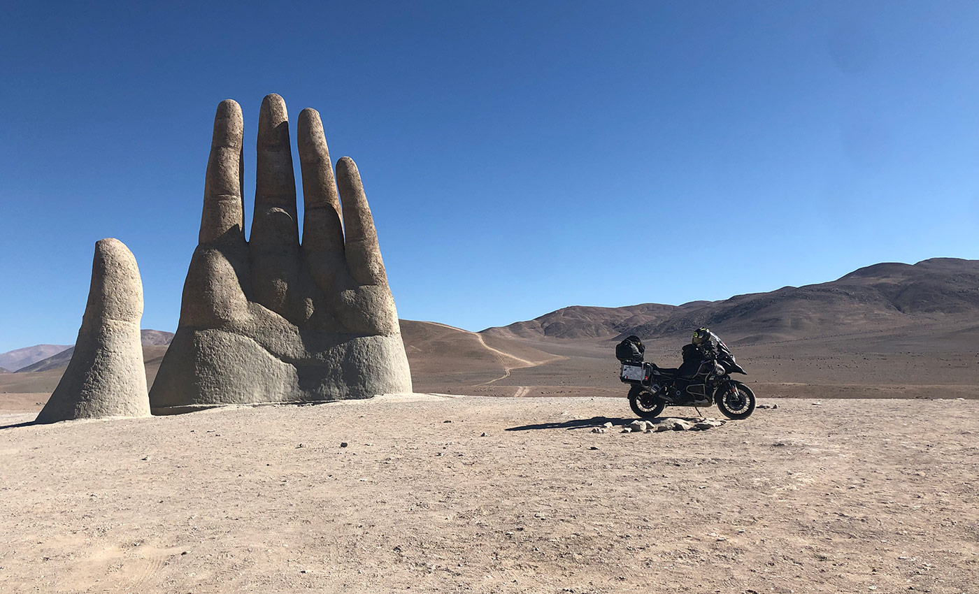 Eventually, after having travelled about 1800 kilometres with temperatures ranging from 8 to 30 degrees, so sometimes suffering from the cold and sometimes from excessive heat, I arrive in front of these fingers which, in the midst of this lunar landscape, are disturbing yet at the same time quite spectacular. I place the bike in the foreground and take some photos, then I set off for Antofagasta, about 75 kilometres away, where I intend to stay for the night after enjoying some excellent meat dishes. I return to Santiago and leave the bike with the dealer for the necessary maintenance.