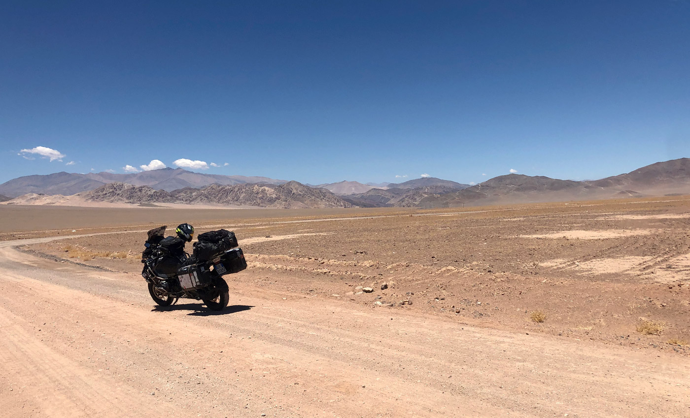 The route, especially the part in Chile, is made up of stretches of dirt road that the locals call “rupio”, sometimes there are beaten tracks, but often the roadway is made up of gravel, so the bike tends to sink, making it quite a difficult drive.