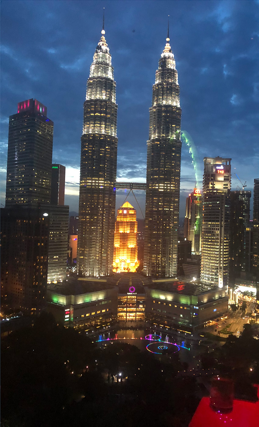 It’s not easy to find the words to describe the emotions you feel when admiring certain manmade wonders but the intelligence of man can leave us in awe, when, right in front of you there are two immense towers that, with their staggering height, seem to challenge every law of gravity. This is exactly what happened when, just a hundred metres in front of me, I glimpsed these majestic constructions that dominate the city. I stop to take some photos: this spectacle deserves more than just a few quick snaps, but tiredness and the need to get to the hotel are overwhelming.