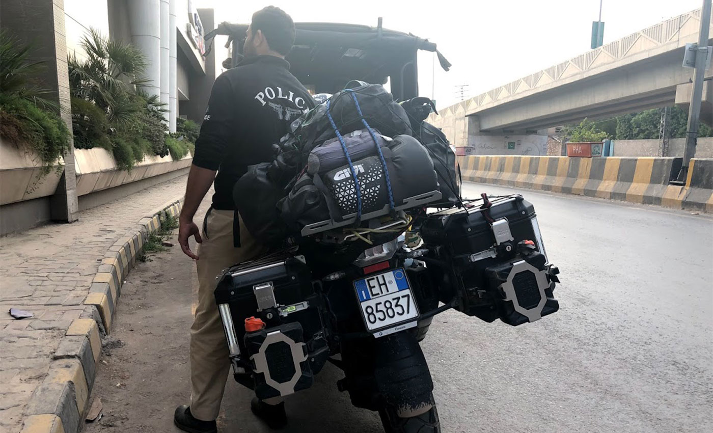 Here the last big reception starts with the police who, upon seeing me, escort me to Mr. Hafiz, the latter is an acquaintance of Mr Iqbal who is kindly at my disposal for assistance, I wait for him to accompany me to a mechanic so I can change the motorcycle oil and air filter, then we reach the workshop where, after finishing the maintenance, they did not want even a single dollar from me, except for a couple of selfies.