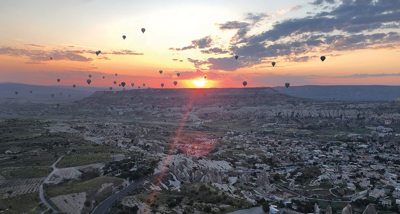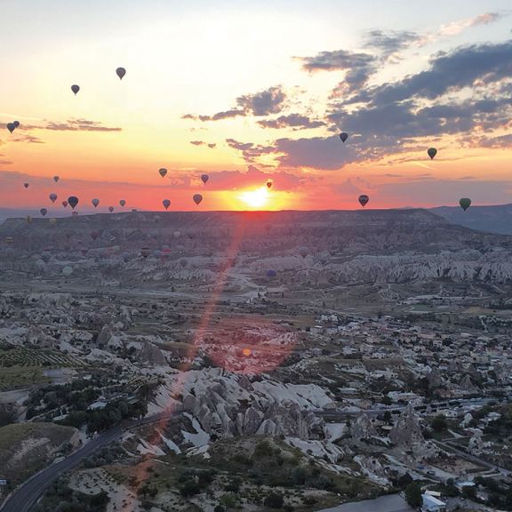 On arrival at the departure point, I climb into the basket attached to the balloon and slowly the basket rises and the flight begins until unknowingly I find myself amongst dozens of other hot air balloons, a breathtaking and spectacular view generating truly unique emotions.